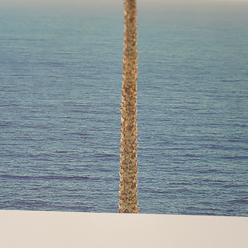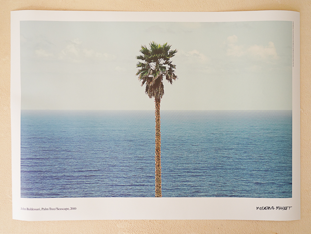 棕櫚樹與海景是洛杉磯的標誌性意象,Baldessari 用它們來反諷「加州樂園」的視覺陳詞濫調。