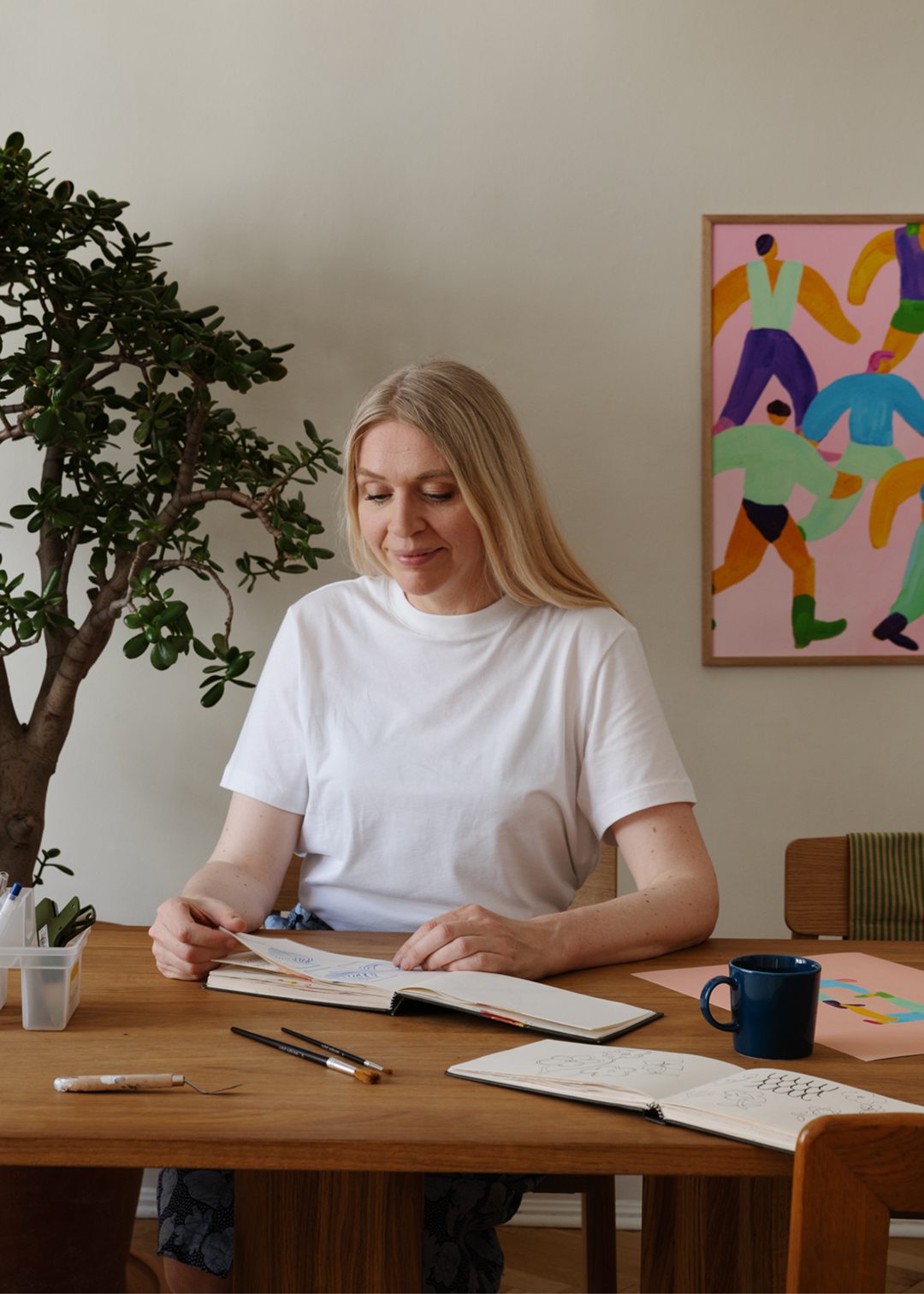 她的色彩受到流行藝術的影響,喜歡將圖案和強烈的個性混搭在一起:“我喜歡創造快樂、古怪且有點奇特的人物和角色,”她說。她使用大面積的顏色和簡化的形式,真正讓色彩成為焦點。