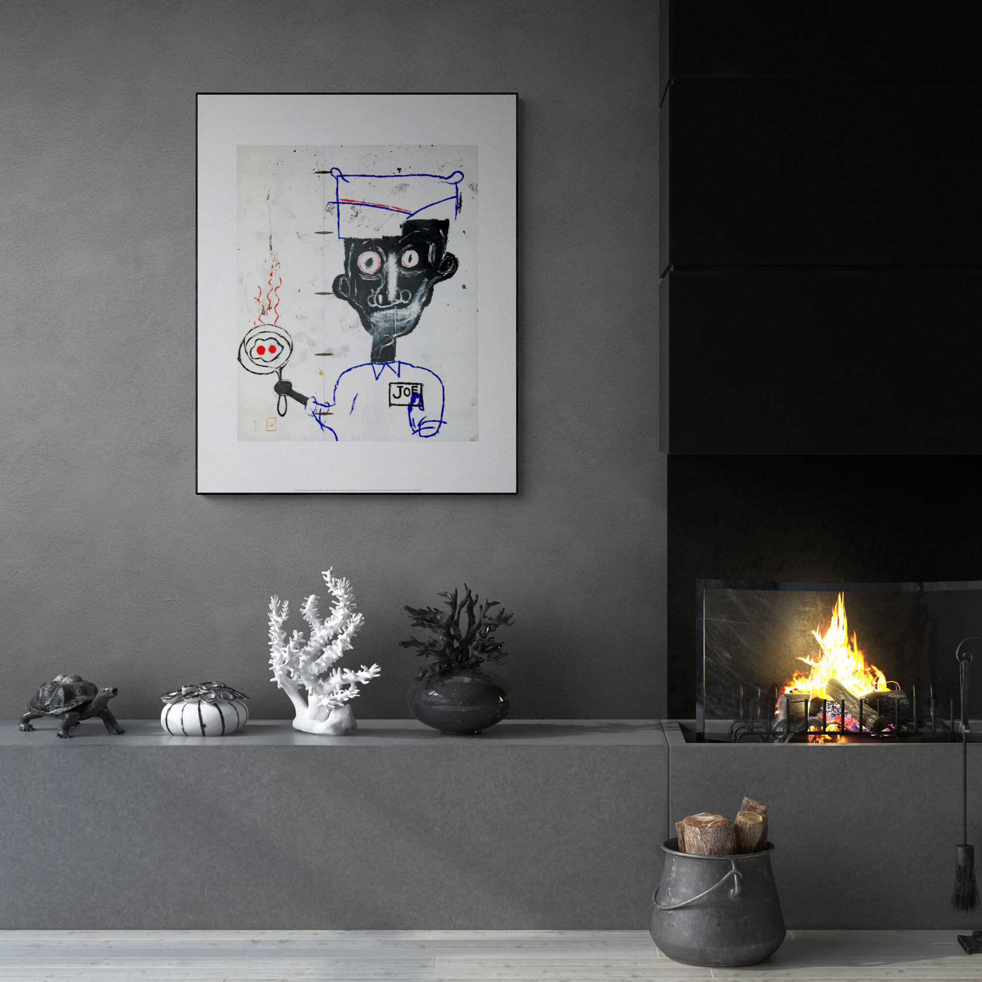 Bring bold flair to your home with this archival print by Jean-Michel Basquiat. His Eyes and Eggs (1983) artwork—originally done in acrylic, oilstick, and paper collage and part of the Broad collection—is printed on Monte Carlo 300gsm watercolor paper. The work comments on aspects of human existence and challenges what we choose to see or choose to accept in the world around us. It serves as a reminder of the everyday moment that we often take for granted: the labor that goes unseen, the eggs that we eat without any gratitude for where they came from, and the consequences of such blind actions.