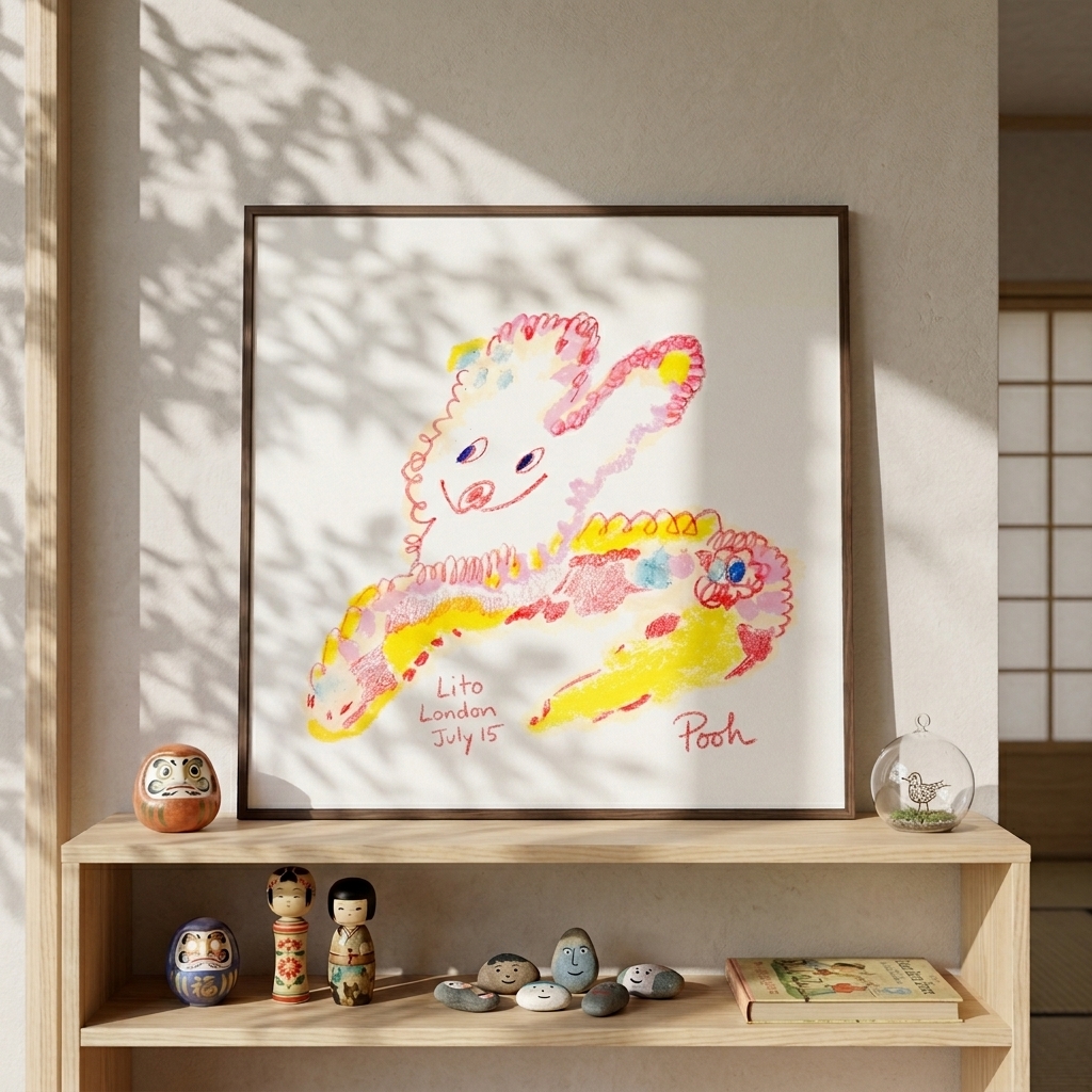 也常以原子筆描繪看似隨手塗鴉、卻充滿豐富細節的畫作。