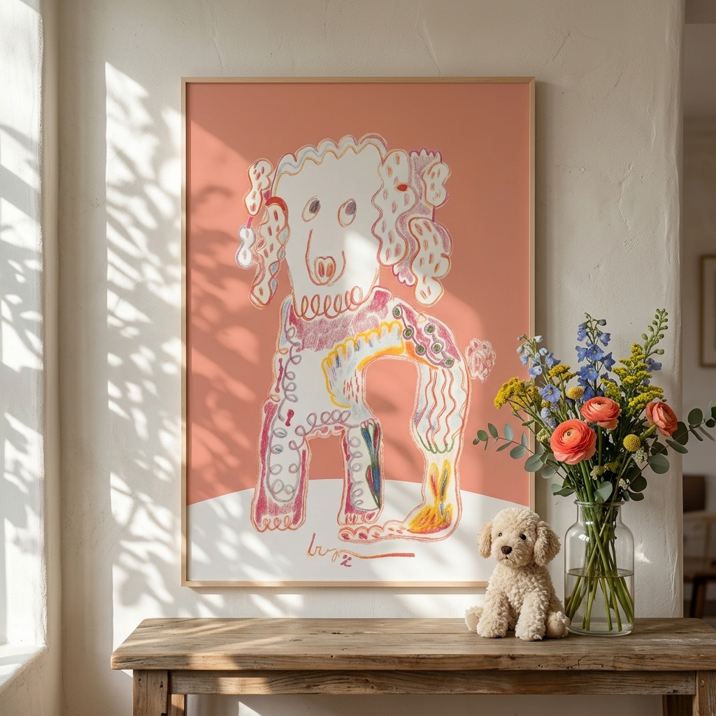 使用粉蠟筆為創作工具,勾勒出一幅幅繽紛細膩的作品。