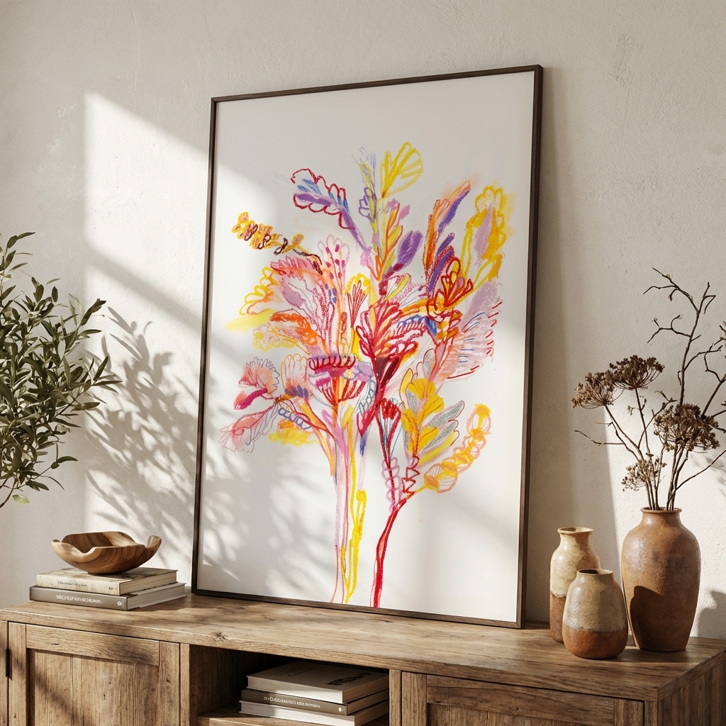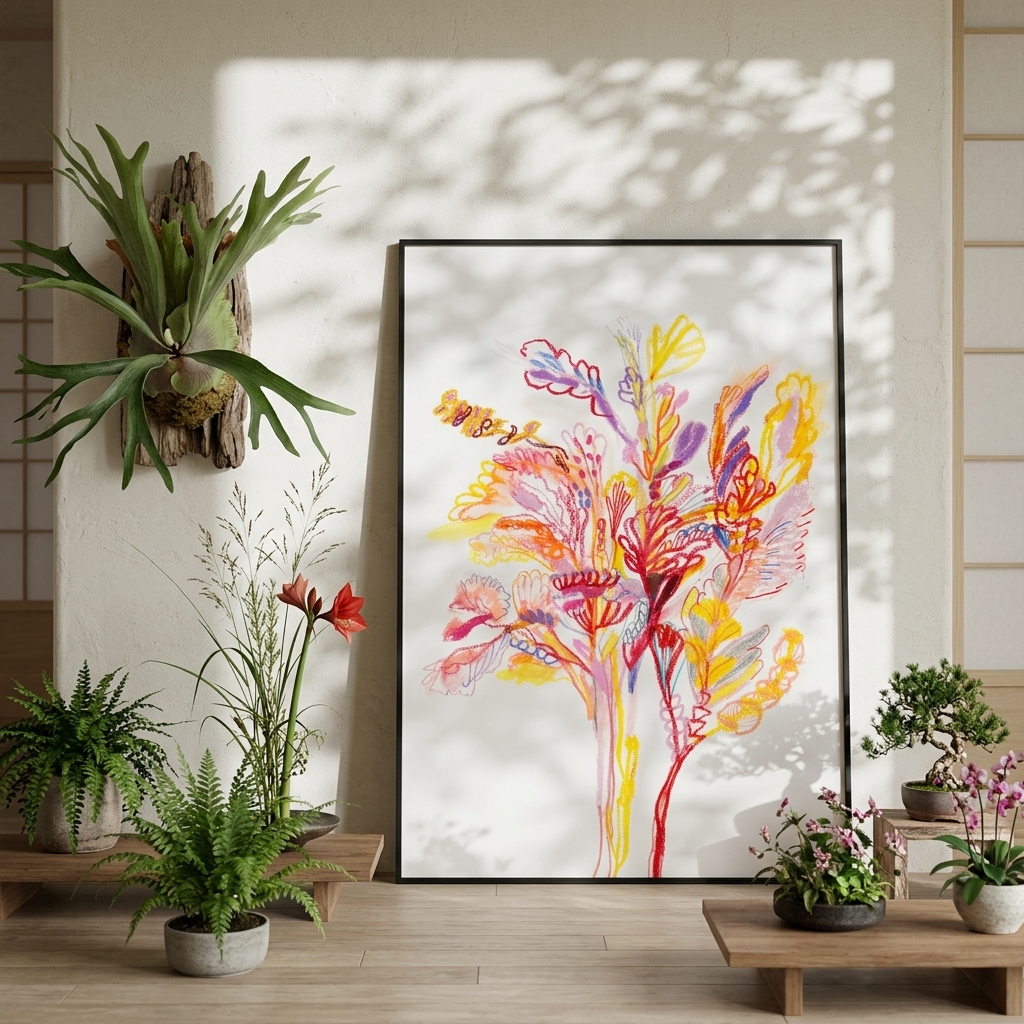 使用粉蠟筆為創作工具,勾勒出一幅幅繽紛細膩的作品。