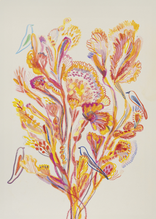 使用粉蠟筆為創作工具,勾勒出一幅幅繽紛細膩的作品。