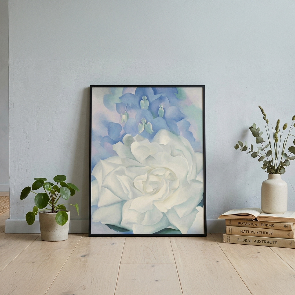 當 Georgis O'Keeffe 畫花時,她當然與幾個世紀的花卉畫家都相似。但無論如何,她的作品是如此與眾不同都不一樣。她吹捧花朵、吹捧花束,無拘無束地專注於細節。宏觀和微觀在色彩、節奏和構圖的新空間中共同流動。它是一朵花——也是一幅畫。