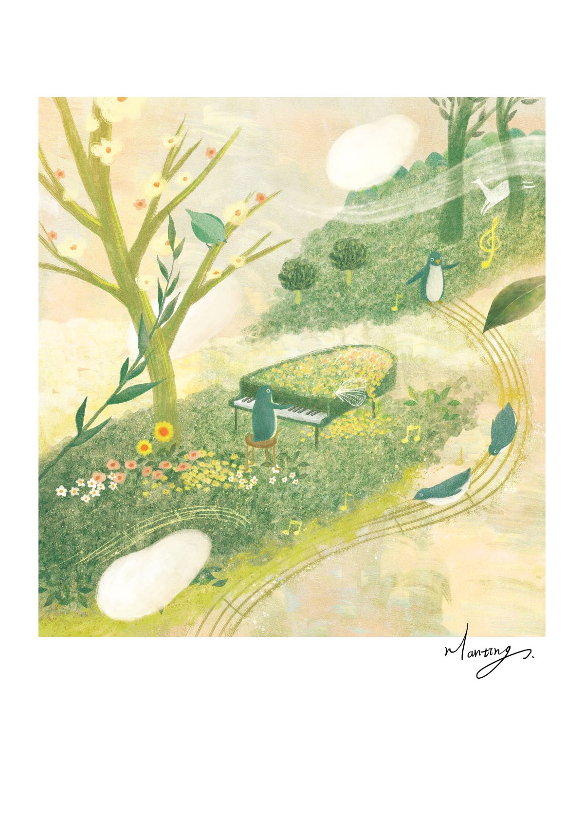 創作靈感多來自音樂、文學和攝影,還有各種想像。希望透過柔軟細膩的筆觸畫出自由與寧靜舒服的感覺,描繪充滿想像和感知的獨特世界,帶觀者到達更遠的地方。