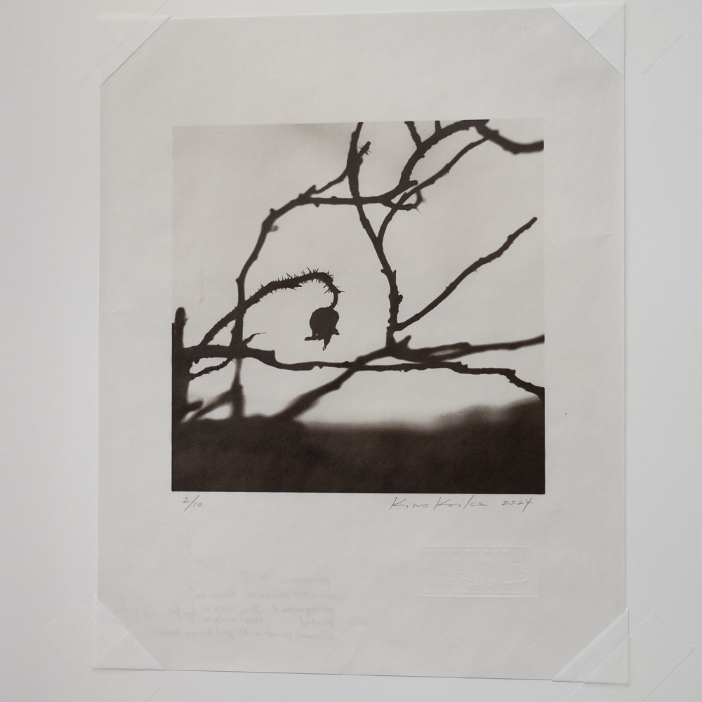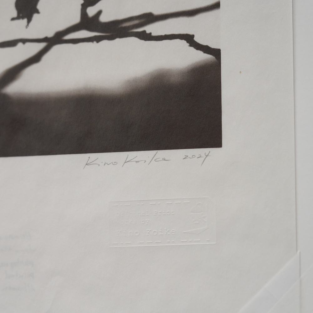 Kino Koike 專注於攝影媒材的紀錄角色定位,創作是將 修復歷史、時間與空間的記憶轉化為物件。他的許多專案都是採用傳統技法製作的,例如銀鹽顯影、蛋白顯影和濕板攝影。