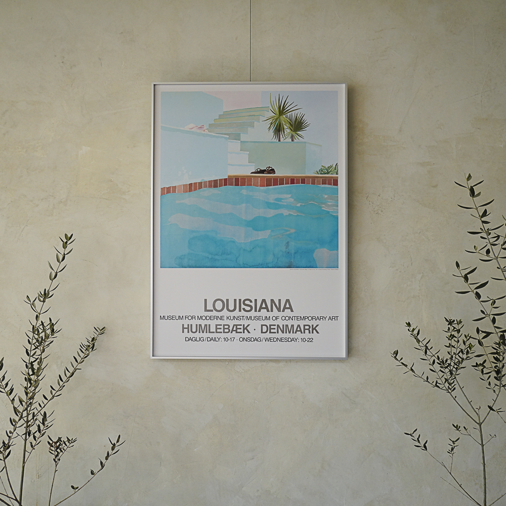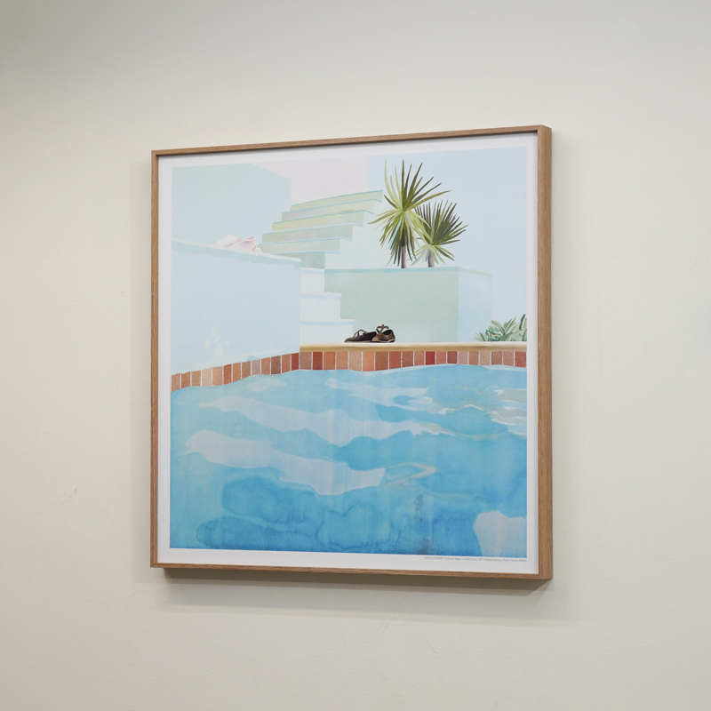 我們回到了 1964 年,當時 27 歲的大衛霍克尼從英國搬到陽光明媚的加利福尼亞。美國西海岸的環境激發了他的靈感,他畫了大量的游泳池有或沒有人的照片,通常保持精緻的粉紅色、淺藍色或淺綠色色調。