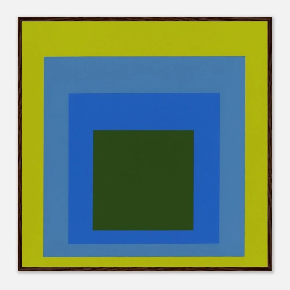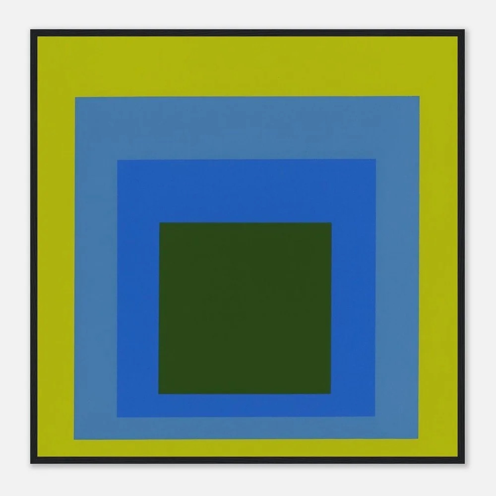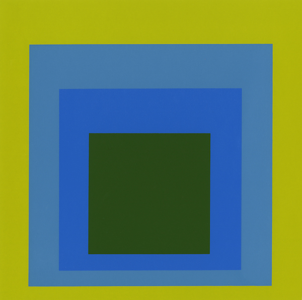 亞伯斯最著名的成就,是持續數十年、嚴謹且深入的系列作品——《向正方形致敬》(Homage to the Square)。