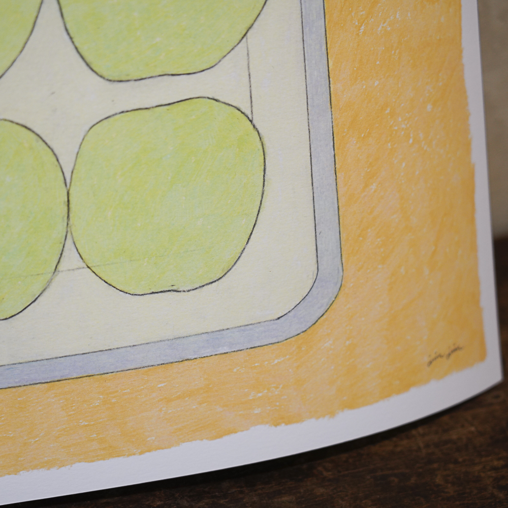 授權的6幅作品,有從袋中滾到廚房桌面上的李子、