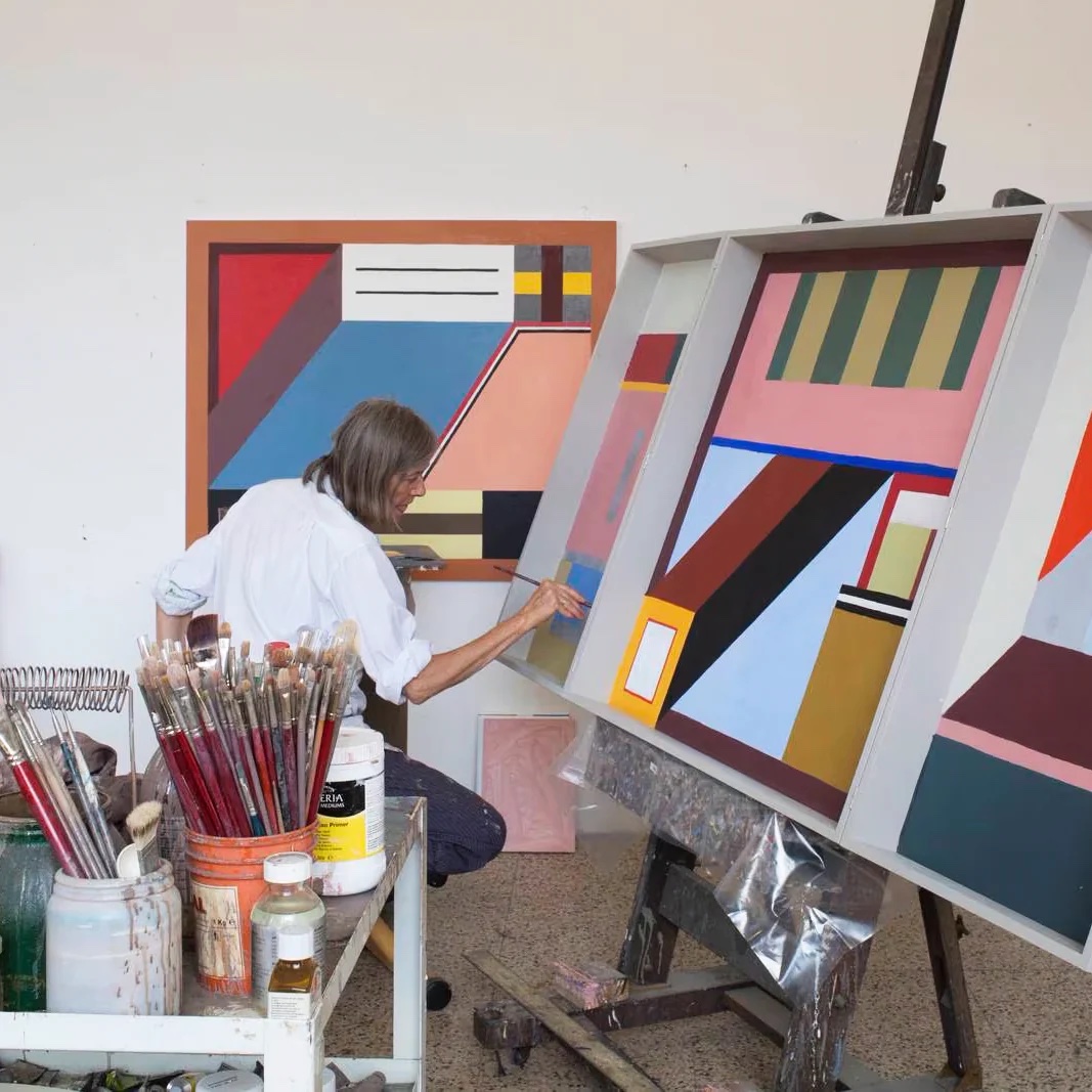 DU PASQUIER 著迷於藝術和建築的二元性,通過大膽的形狀和出人意料的色彩組合,將二維和三維物體的結構發揮得淋漓盡致。初期描繪靜物和風景,她的畫現在較少描繪真實物體,而是表達一種更具探索性的視覺。