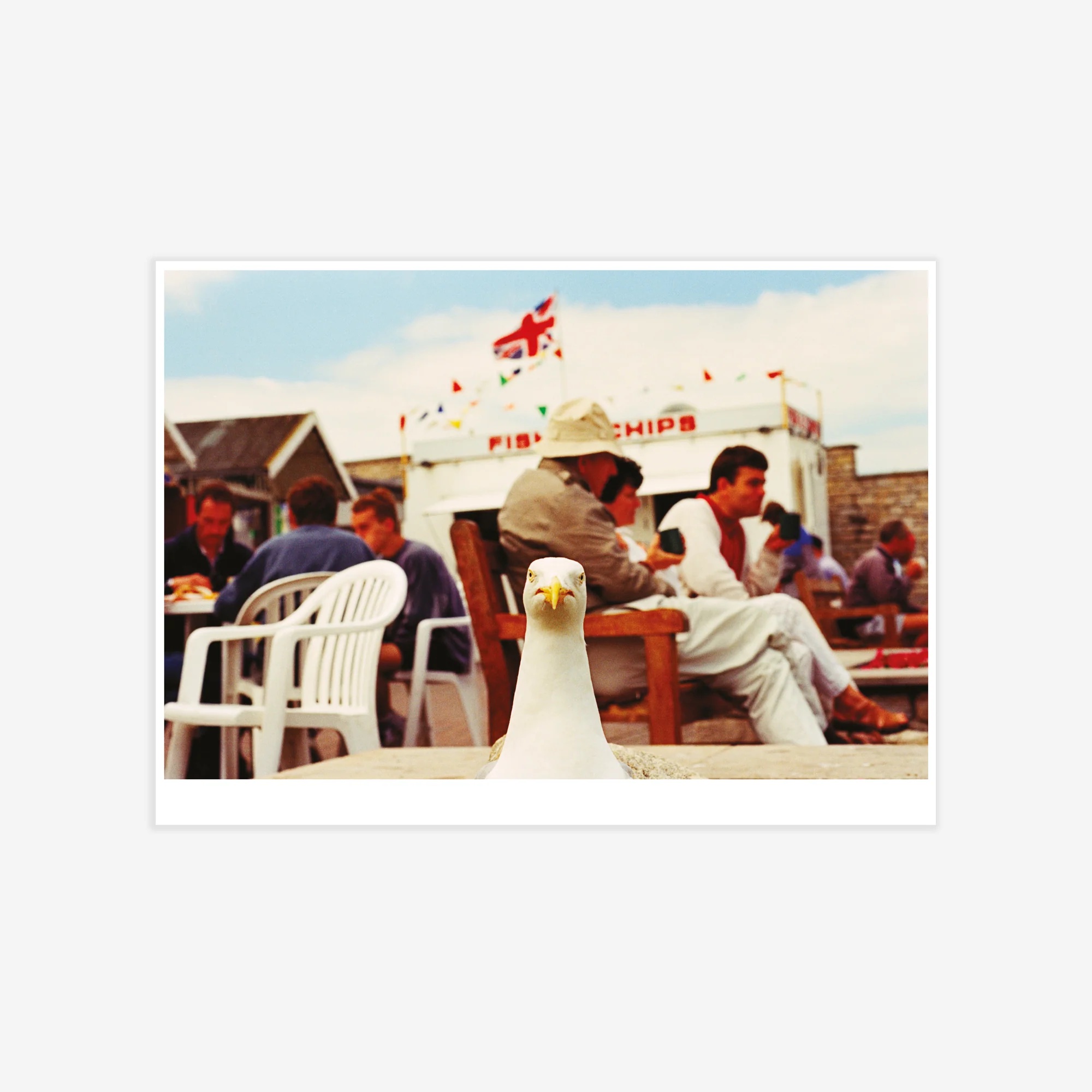 英國著名攝影師 馬丁帕爾( Martin Parr)的全新系列照片,聚焦於他最鍾愛的主題——休閒和海濱——這些主題貫穿了他的整個職業生涯。馬丁以其鮮豔的色彩和獨特的視角而聞名,此次他與Wrong Shop和Rocket Gallery合作,創作了這組獨家海報,其中融入了他標誌性的詼諧幽默。這張照片出自1997年出版的攝影集《西灣》(West Bay),描繪了多塞特郡布里德波特附近的西灣海濱度假勝地,拍攝於1996年8月的銀行假日週末。