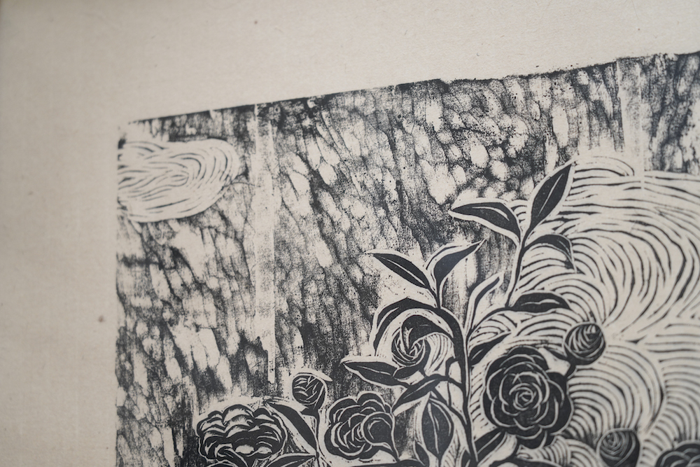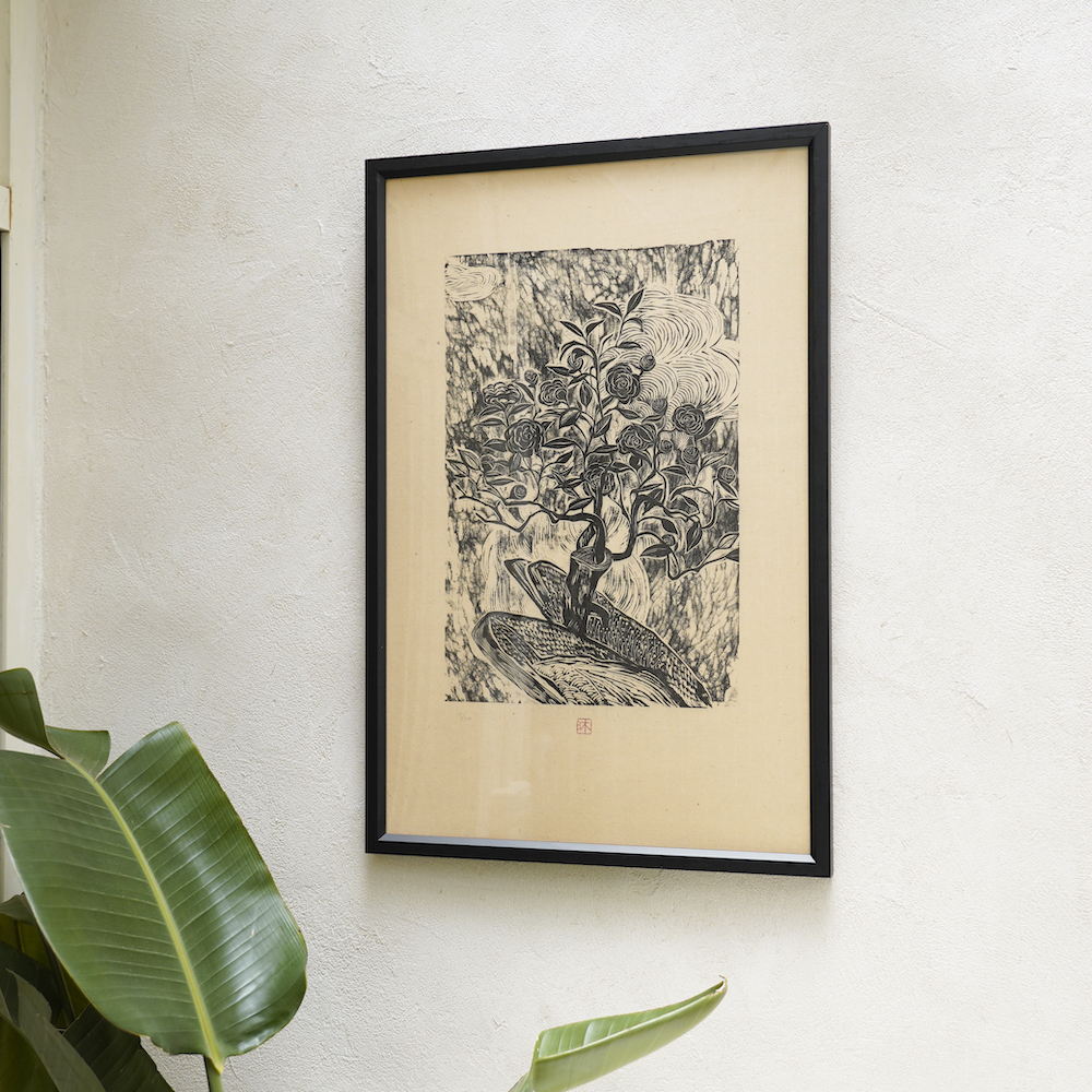蓊鬱幽靜的山林、靜謐綻放的花草樹木再到恬適的一窩方居與快意的日常寫景;沐冉無論是單版複刻的套色作品,或者純黑白的水印作品,都並非單單著墨於表象上那些可愛有趣的視覺造形和色彩,甚至也不是豐富多姿並帶有裝飾性的細緻刀法;對於繪畫性的深刻體會與執著,以及自身對生活品味的觀照與經營才是他作品中真正的核心。