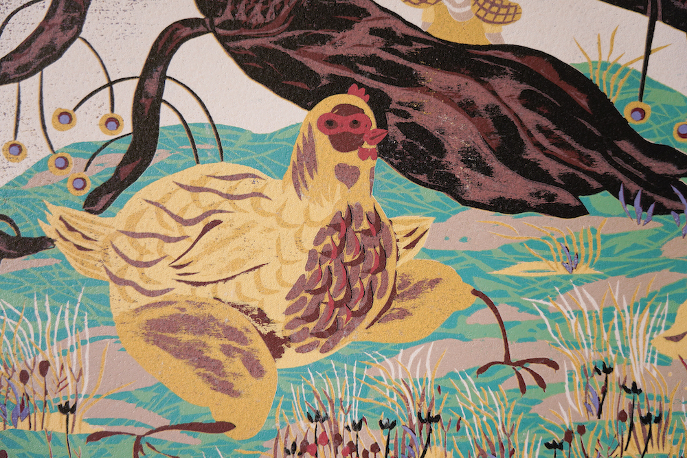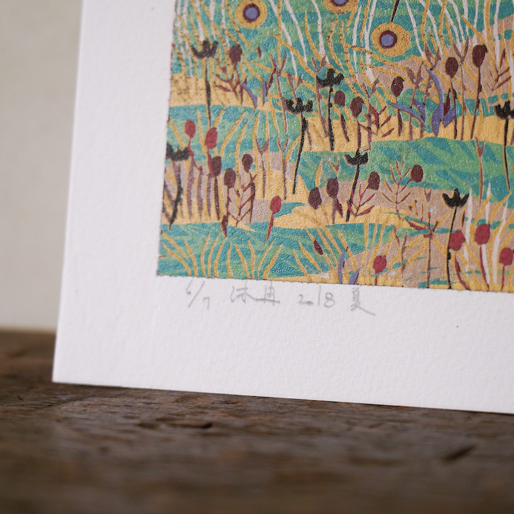 蓊鬱幽靜的山林、靜謐綻放的花草樹木再到恬適的一窩方居與快意的日常寫景;沐冉無論是單版複刻的套色作品,或者純黑白的水印作品,都並非單單著墨於表象上那些可愛有趣的視覺造形和色彩,甚至也不是豐富多姿並帶有裝飾性的細緻刀法;對於繪畫性的深刻體會與執著,以及自身對生活品味的觀照與經營才是他作品中真正的核心。