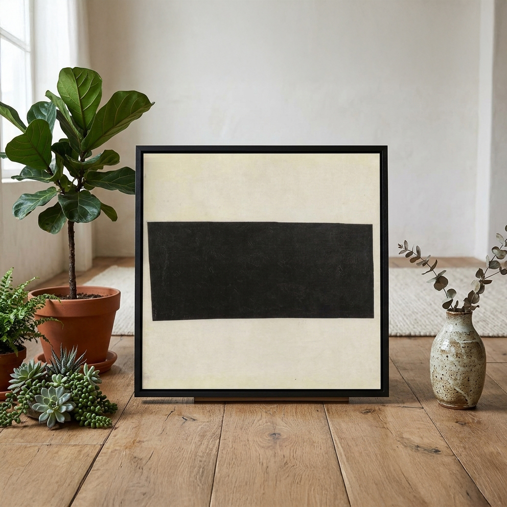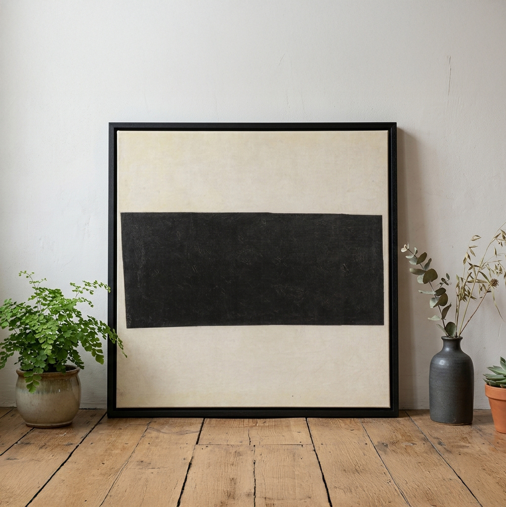形式: 此作展現了長方形幾何平面在空間中的平衡美學。馬列維奇透過絕對的比例與純淨的色彩,探討物體在無重力狀態下的靜止與和諧。