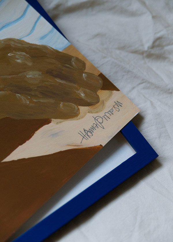 漢娜在瑞典中部的一個小鎮長大,但在過去幾年中,她把位於海岸的哥德堡當作了自己的家。在這座城市,她成為了一名藝術家,並在一個與朋友共用的小工作室和工作室裡日復一日地工作。然而,她作品的大部分初始靈感都是在她日常的散步中形成的。「當我出去散步時,我在腦海中草擬畫面。之後,我經常製作情緒板,放在工作旁邊——這有助於我建立一種可以引導我進入創作過程的氛圍。」