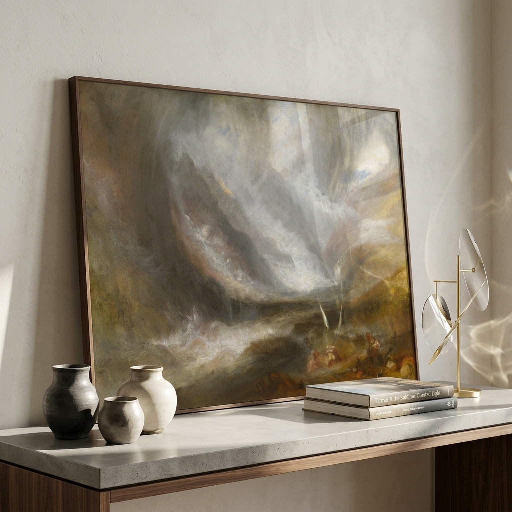 特納喜歡描繪自然現象和自然災害:火災、沉船、陽光、風暴、大雨和霧霾,他為大海的能力所傾倒,雖然也描繪人物,但只是為了襯託不能為人們征服的大自然的崇高和狂野,是上帝能力的證明,所以在他的後期注重描畫在水面的光線、天空和火焰,而逐漸放棄描繪實在,為印象派的理論開闢了道路。
