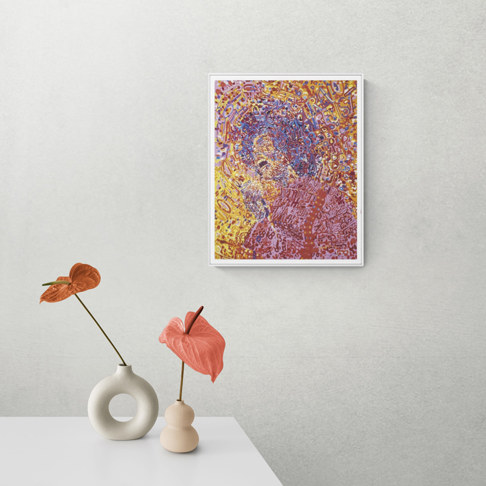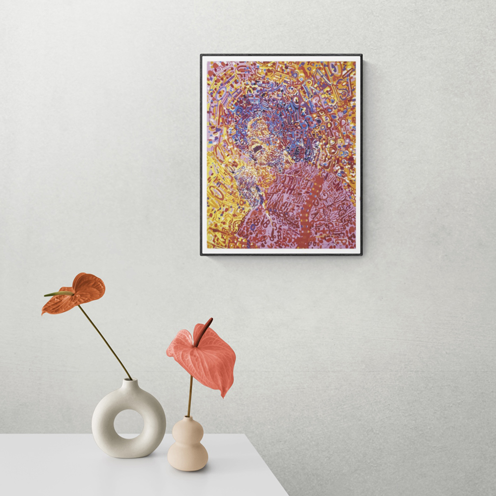 Wadsworth Jarrell 是 AfriCOBRA(不良相關藝術家非洲公社)的創始人之一,這是一群來自芝加哥南部的黑人藝術家,幫助塑造了黑人藝術運動的形象。他的作品曾入選泰特現代美術館廣受好評的巡迴展覽“一個國家的靈魂:黑人權力時代的藝術”和 2019 年威尼斯雙年展。在二戰期間擔任軍隊的連隊藝術家後,Jarrell 於 1958 年就讀於芝加哥藝術學院和他的 BFA。他的作品的特點是使用充滿活力的“冷色”色彩,黑色力量口號和對黑人的肯定表示。他為民權活動家安吉拉·Y·戴維斯(Angela Y. Davis,Revolutionary,1972 年)的標誌性肖像是根據她在 1970 年的一次演講中拍攝的照片。在賈雷爾的描述中,戴維斯對著麥克風說“愛”、“黑人、 ”和“革命”似乎從她的嘴裡散發出來。在這幅畫中,戴維斯似乎穿著革命套裝(Revolutionary Suit,1969 年)的腰帶,這是一件由賈雷爾的妻子傑·賈雷爾設計的可穿戴藝術品。
