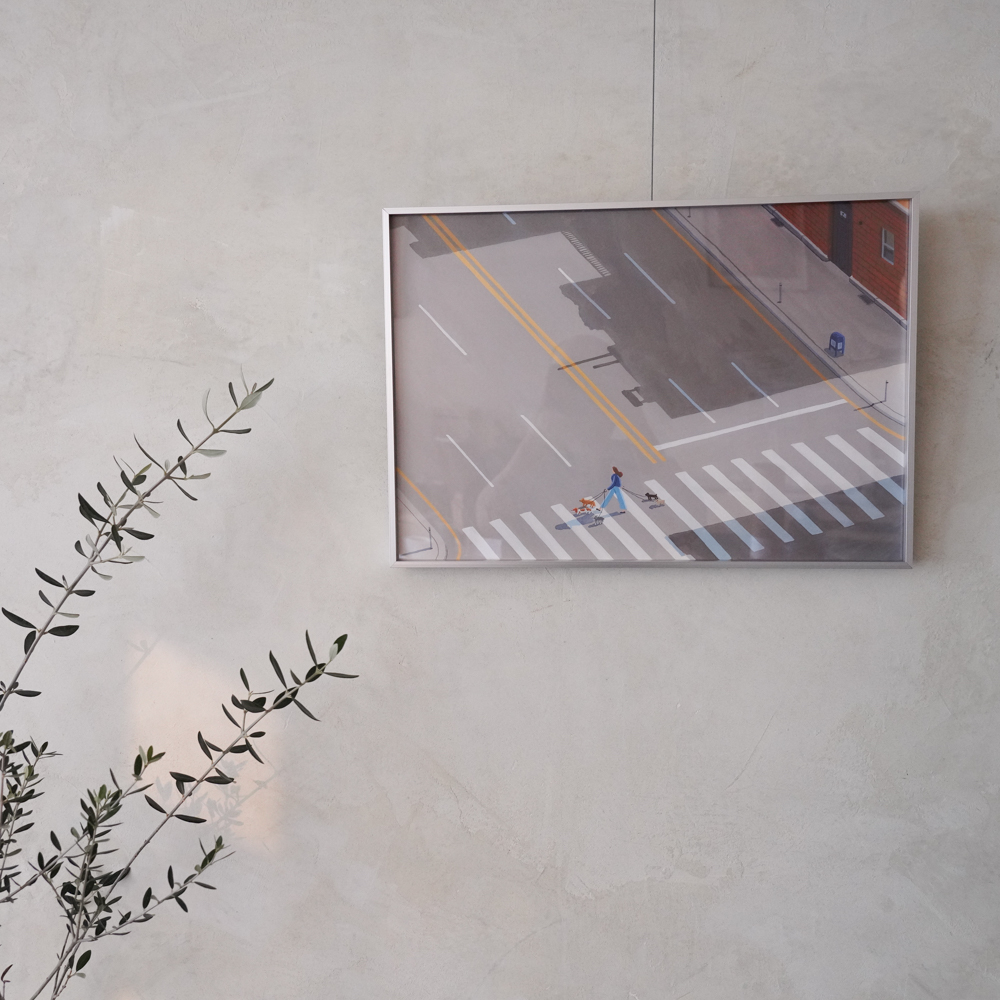 這是由MakerMaker製作的開放版本。原畫首次亮相於Seula Yi於2022年在巴黎舉辦的個展《城市的藍色》。 這件藝術品展示了一位遛狗者穿越城市中的街道。藝術家在創作這幅畫時想著紐約中央公園。 這幅藝術印刷品是為了在Arches紙上重現原畫的質感和顏色。