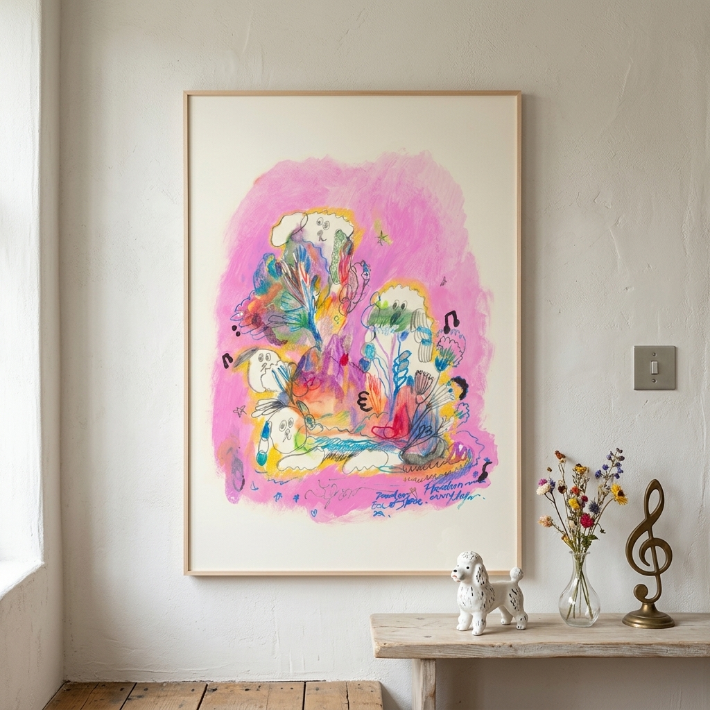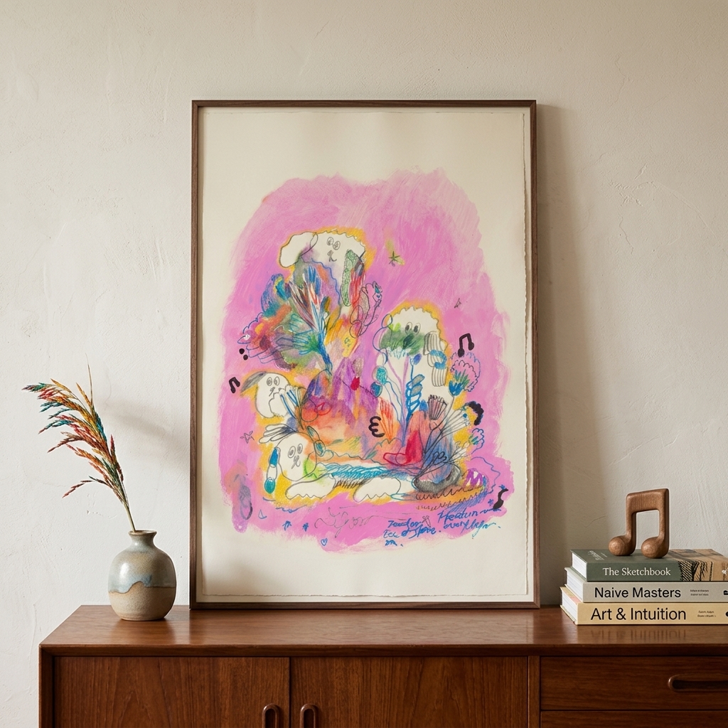 使用粉蠟筆為創作工具,勾勒出一幅幅繽紛細膩的作品。