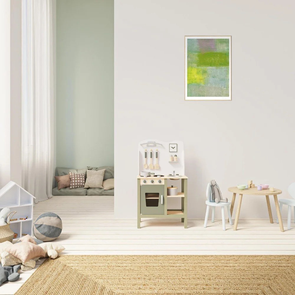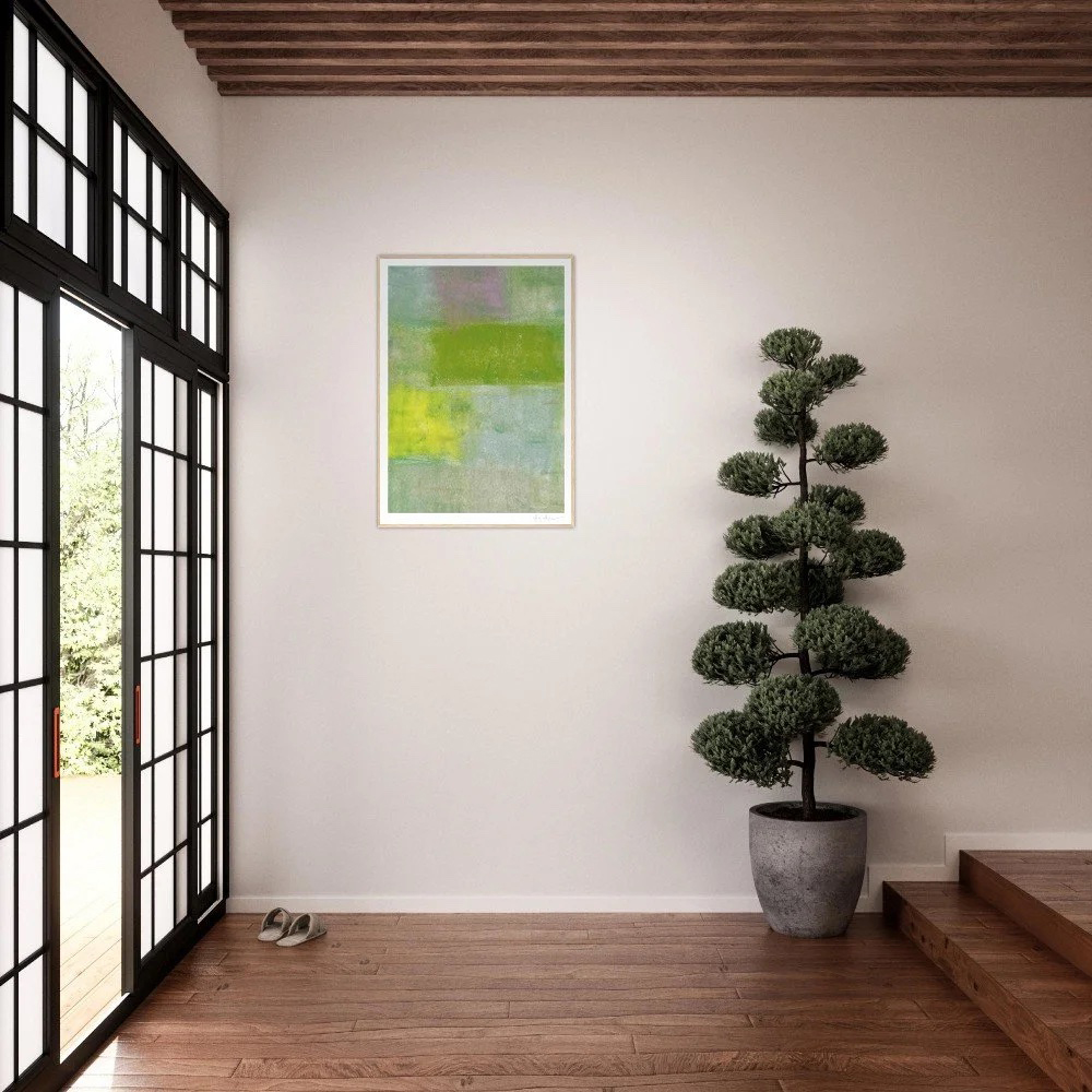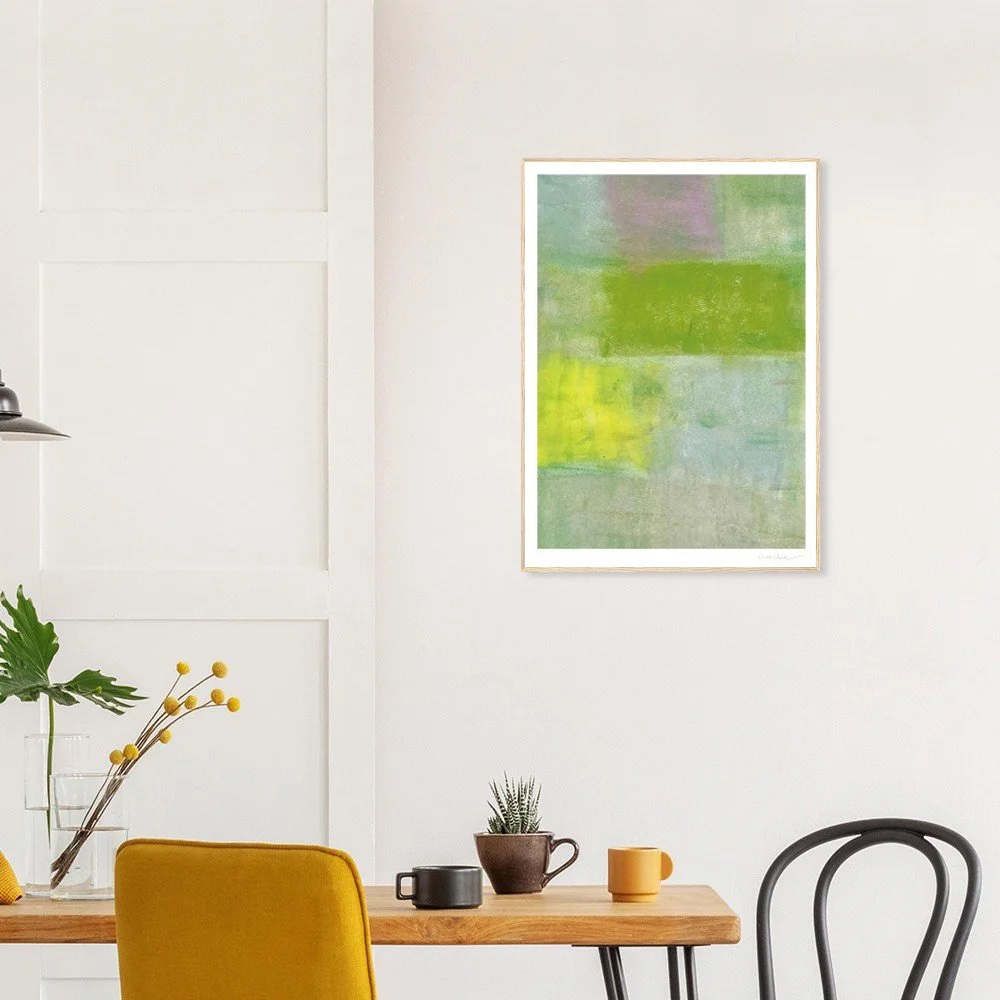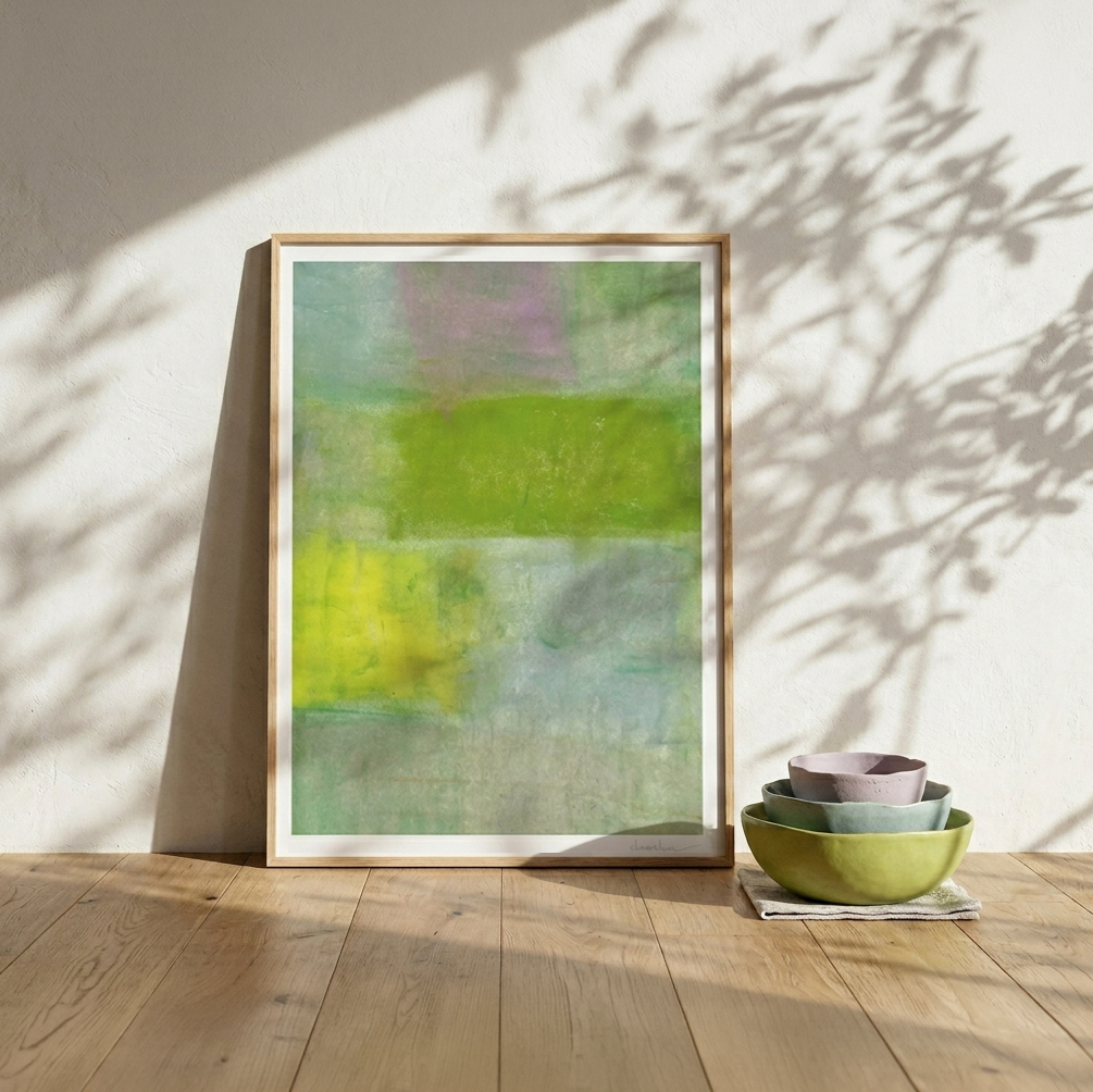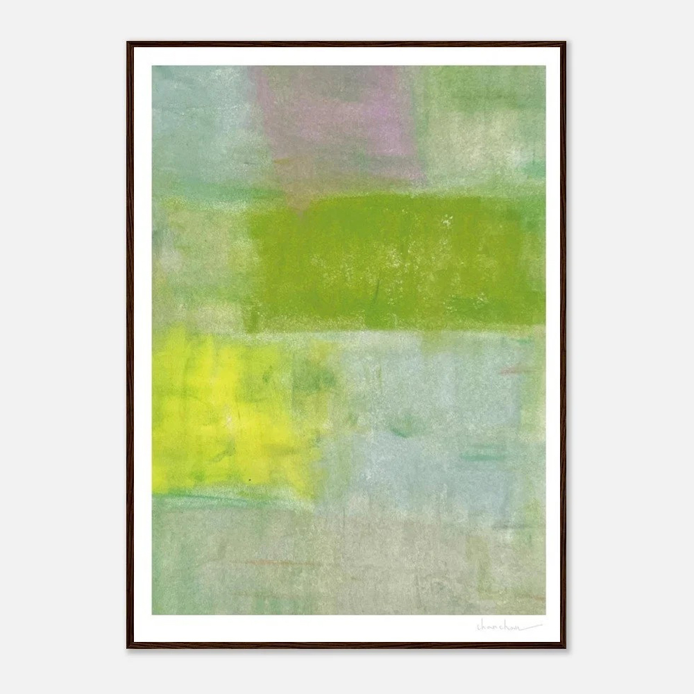 日常2|Chan Chan 油性粉彩抽象風景藝術微噴,綠、黃、淡紫色域構成