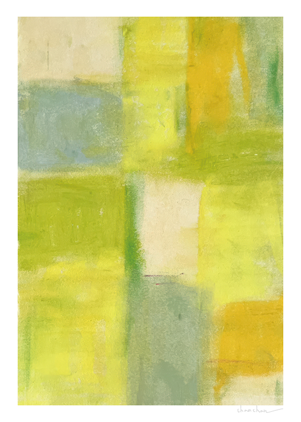 以油性粉彩創作,無意識風景drawing for being, keep walking,創作即靜心,那裡只能有自己,等著,就只是靜靜等著,風景緩慢到來。畫畫,只在早上畫畫,自然光下,沒有時間,沒有目的。只用指腹畫畫,在顏料與紙張之間來回行走,像赤腳在岩地來回漫步,反覆,便會有一種炙熱,也會有痛,過去現在未來碾壓在一起,層疊塗抹的一切又遠又近,在紙上,緩緩顯影內心的無意識風景。