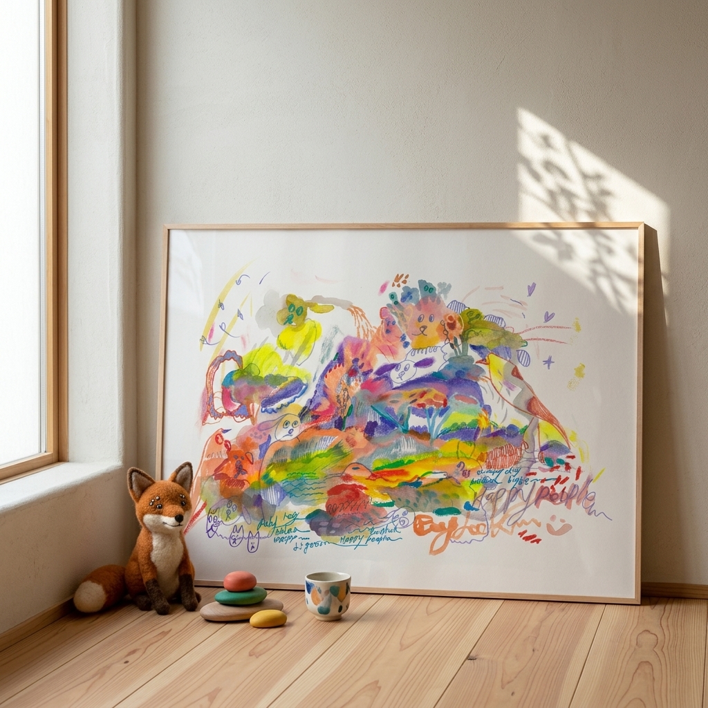 使用粉蠟筆為創作工具,勾勒出一幅幅繽紛細膩的作品。