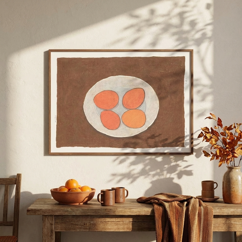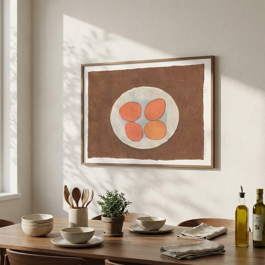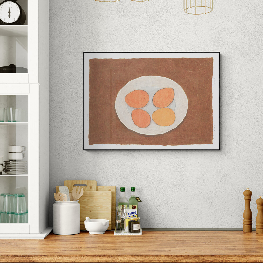 授權的6幅作品,有從袋中滾到廚房桌面上的李子、