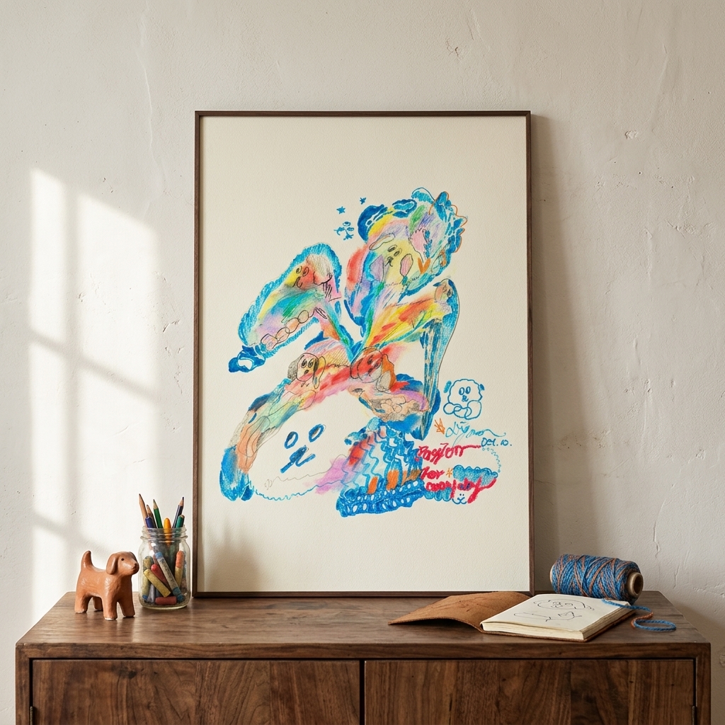 使用粉蠟筆為創作工具,勾勒出一幅幅繽紛細膩的作品。