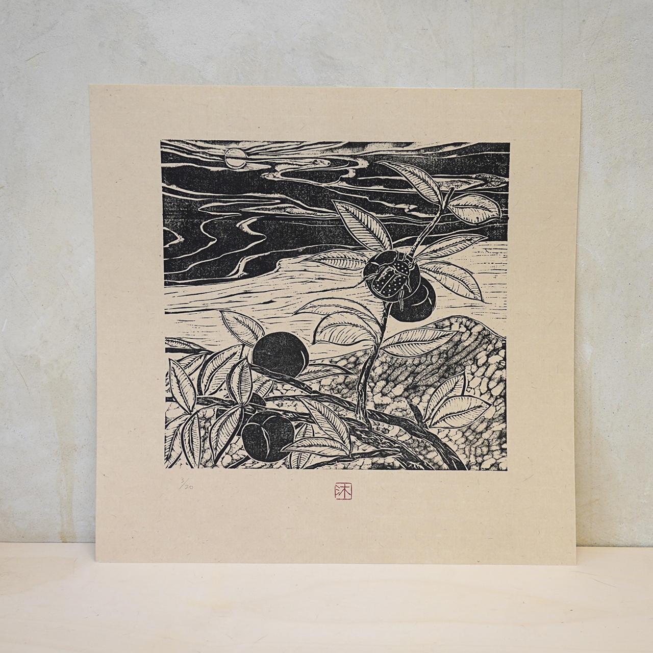 蓊鬱幽靜的山林、靜謐綻放的花草樹木再到恬適的一窩方居與快意的日常寫景;沐冉無論是單版複刻的套色作品,或者純黑白的水印作品,都並非單單著墨於表象上那些可愛有趣的視覺造形和色彩,甚至也不是豐富多姿並帶有裝飾性的細緻刀法;對於繪畫性的深刻體會與執著,以及自身對生活品味的觀照與經營才是他作品中真正的核心。