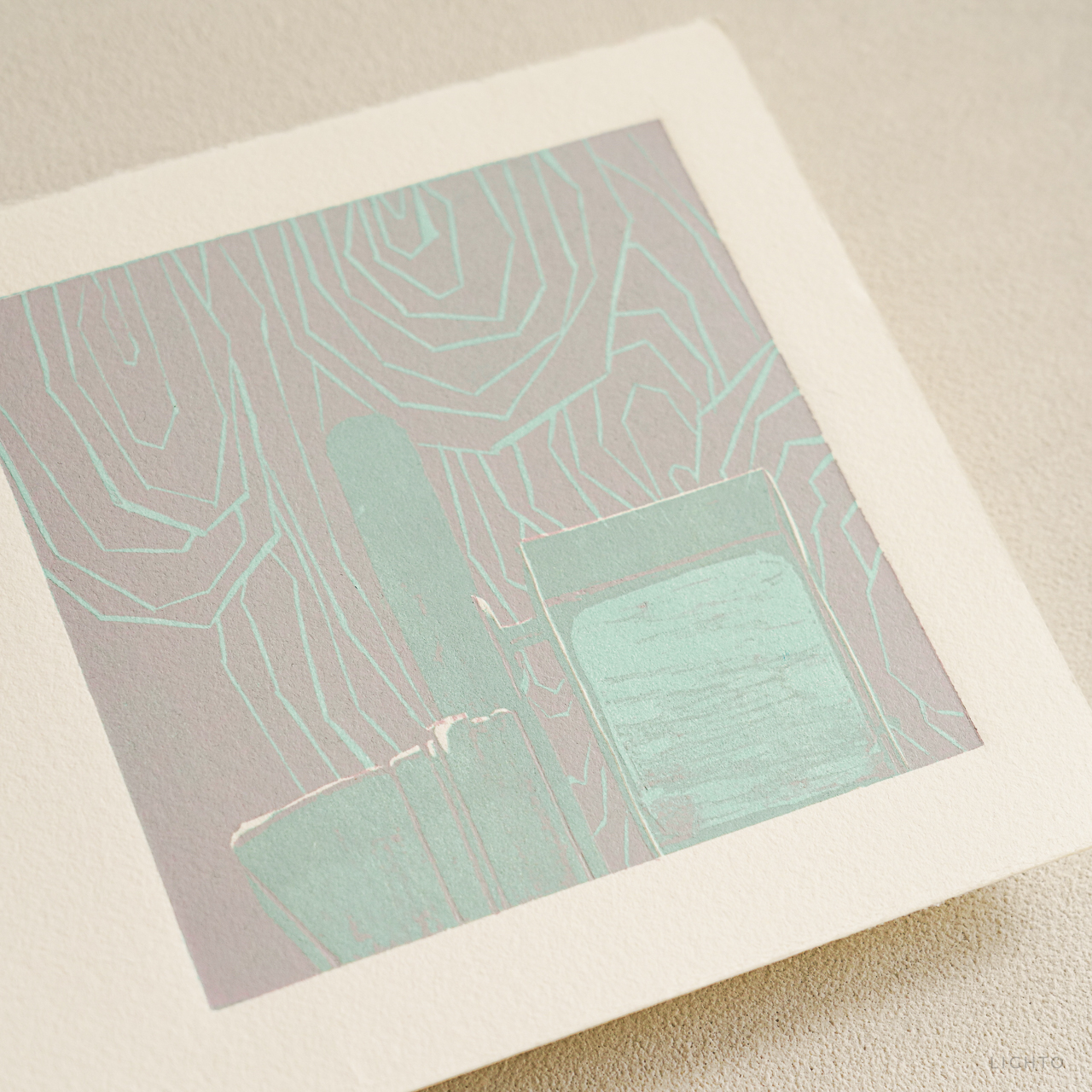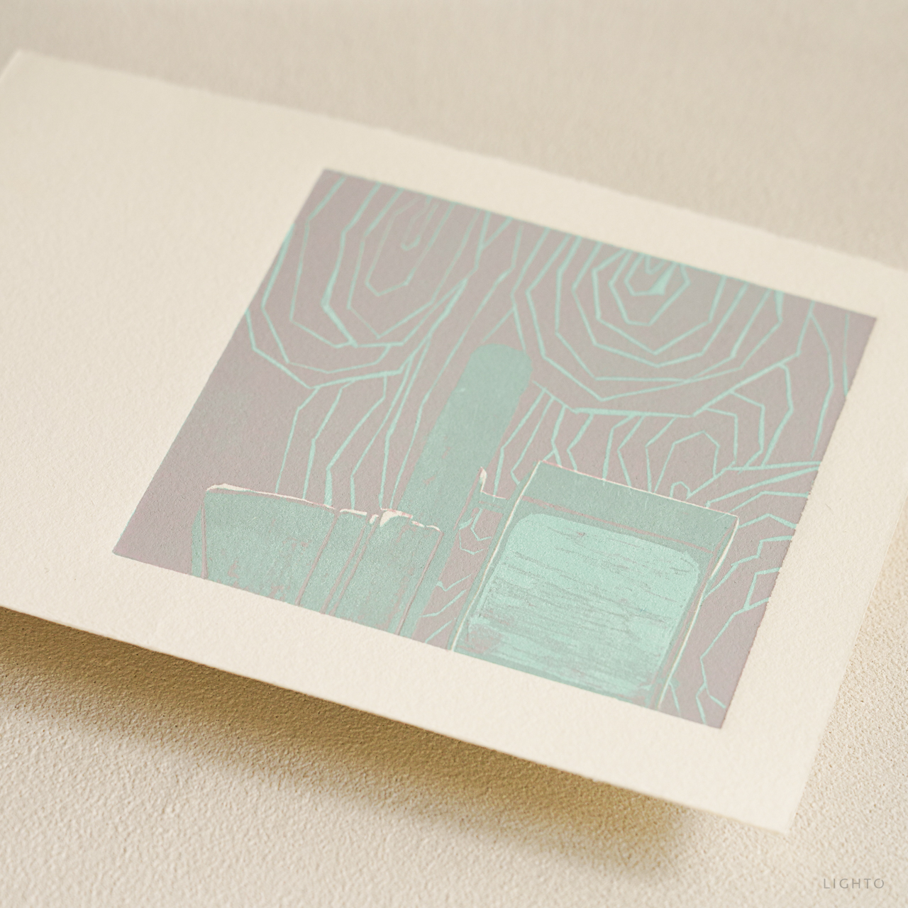 *如果升級成無酸卡紙,會使用無酸點點膠固定位置,版畫仍可與底版分離取出。