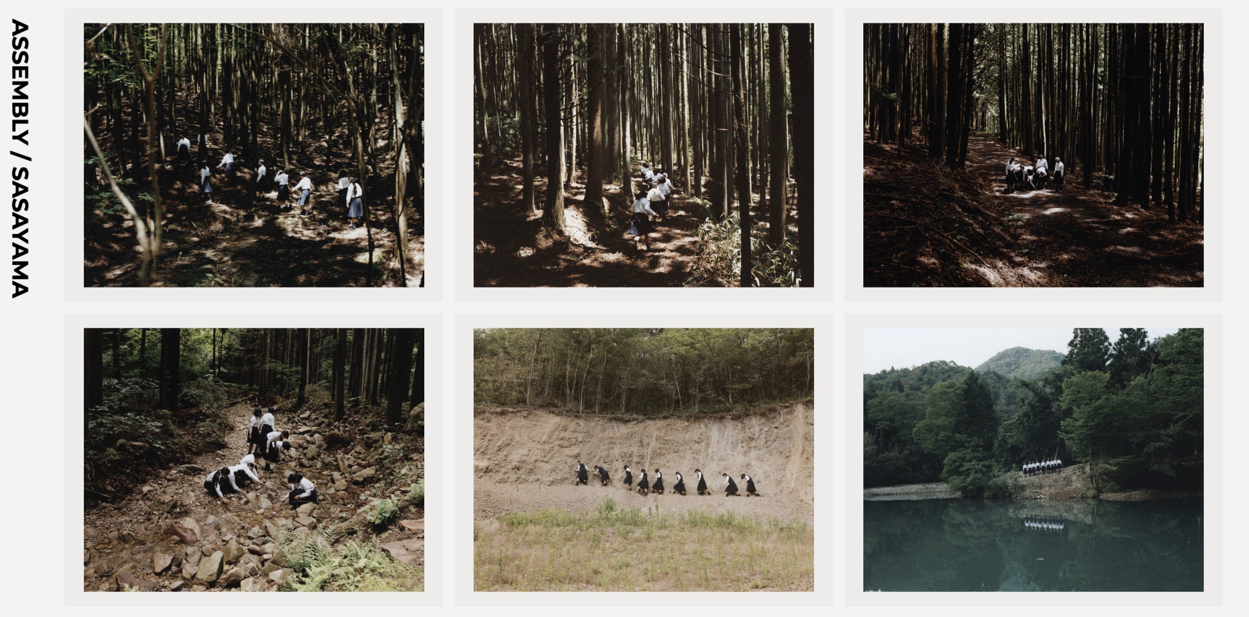 《Assembly》:在這個作品系列中,橫浪修將一群女性放置在特定的自然環境中,強調她們在自然中的和諧共存。這個系列以獨特的視角和構圖吸引觀眾的注意,展示了攝影師對自然和人物之間關係的探索。