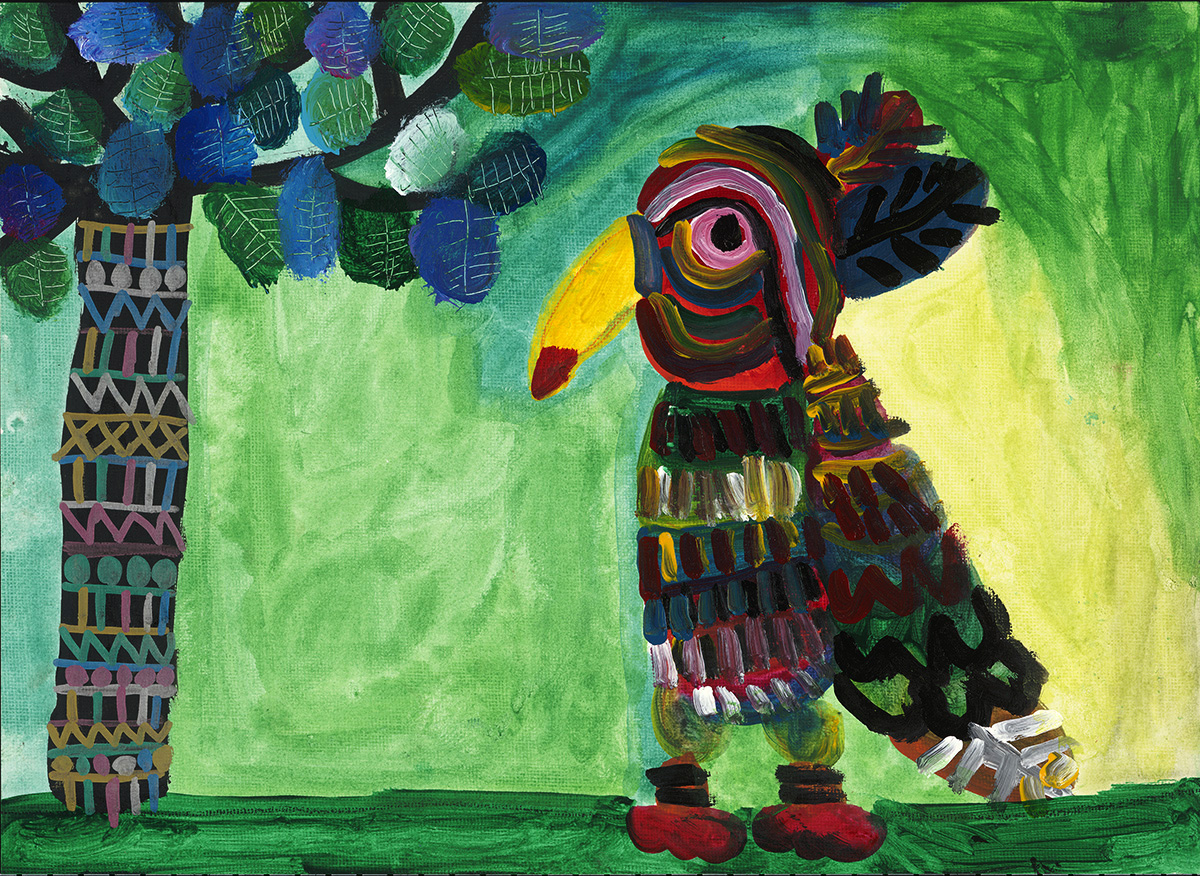 人稱小歐哥,從小不愛說話,自五歲接觸顏料開始,非常熱愛拿筆畫畫。作畫是他的紓壓方式,也是他和外界溝通的媒介。雖身為一位自閉的特殊生,但透過他極富渲染力的畫面,不難發現他其實是一個開心、歡樂,也同時被愛環繞下孕育成長的孩子。