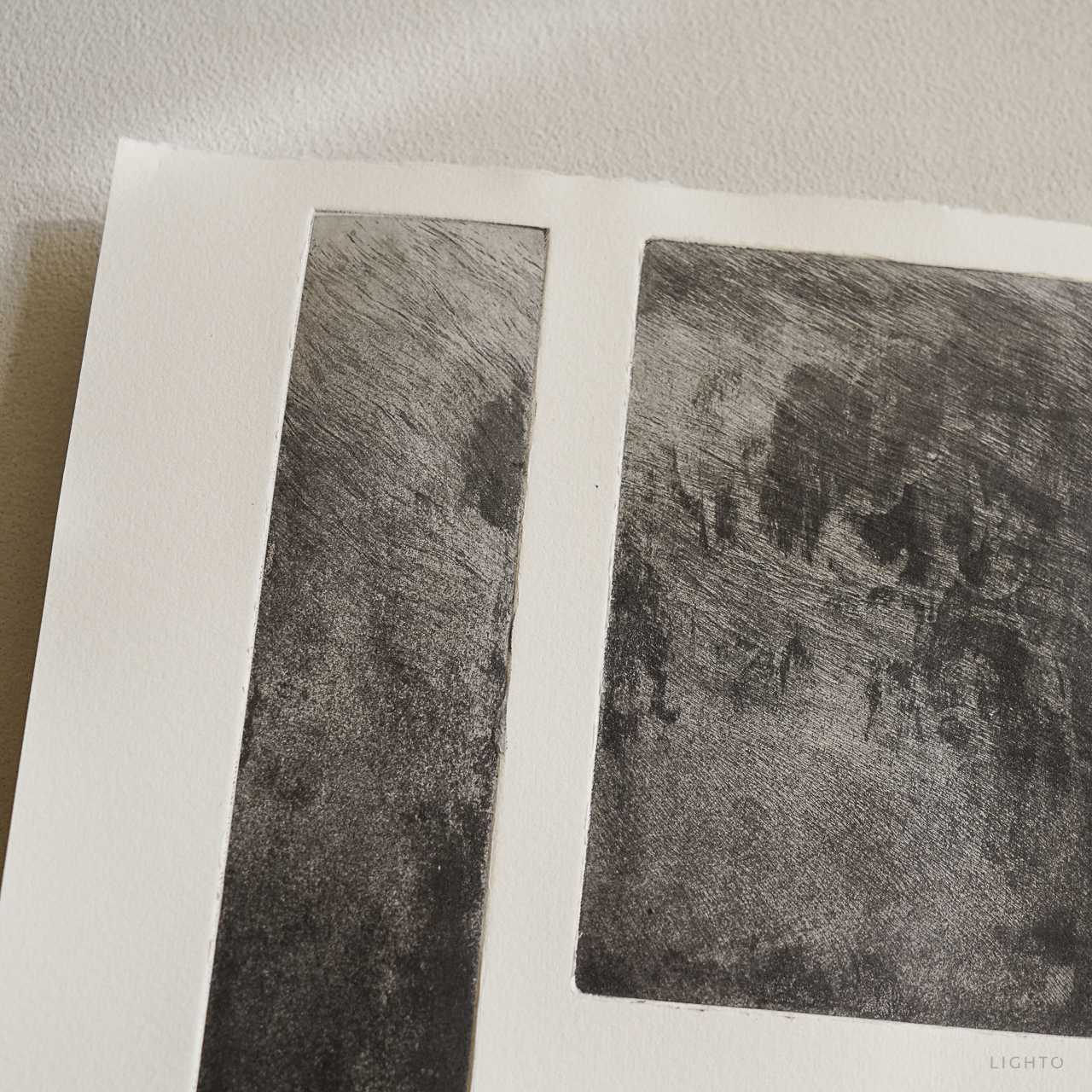 *如果升級成無酸卡紙,會使用無酸點點膠固定位置,版畫仍可與底版分離取出。