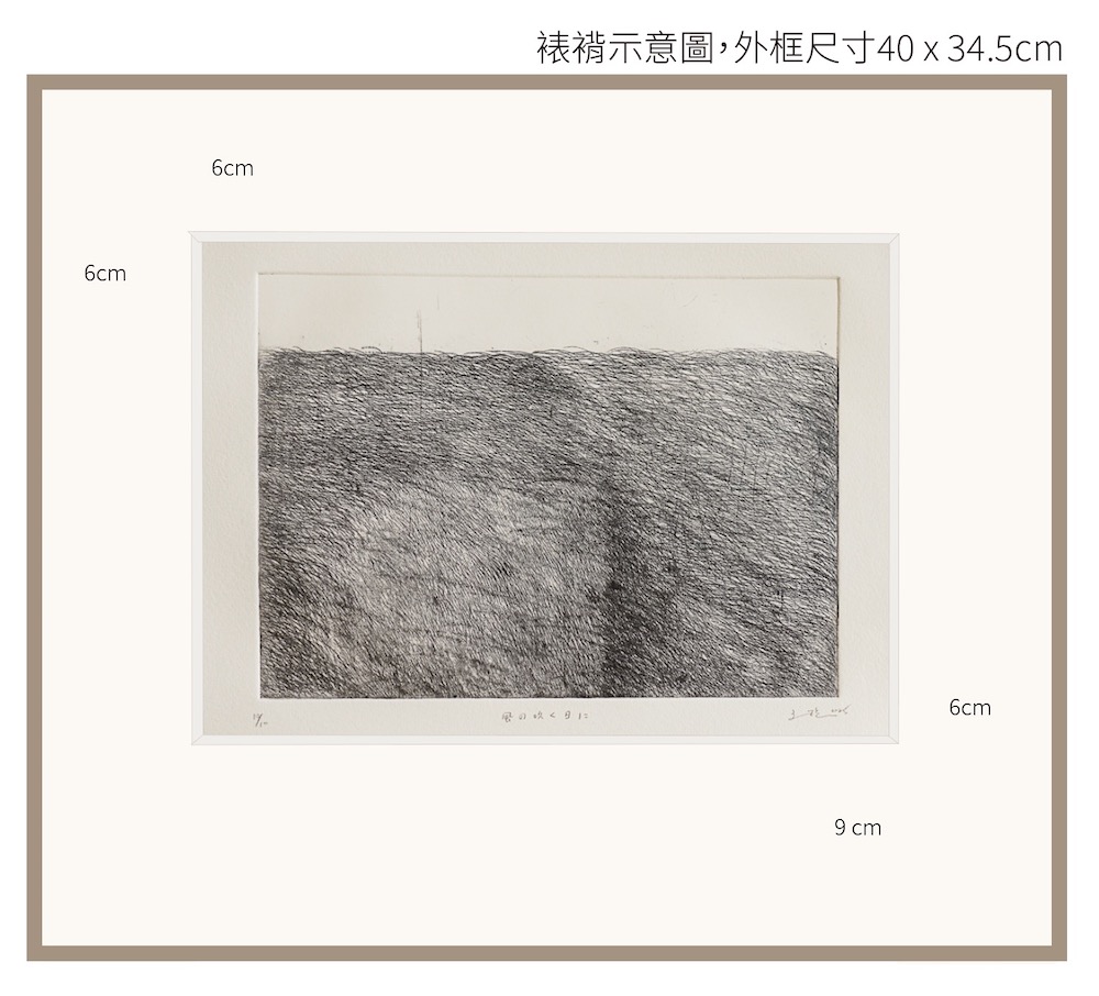 裱褙方式:基本裱褙+卡紙(作品前面加上視覺框卡紙會蓋住紙張一邊約2mm,只露出紙張部分)