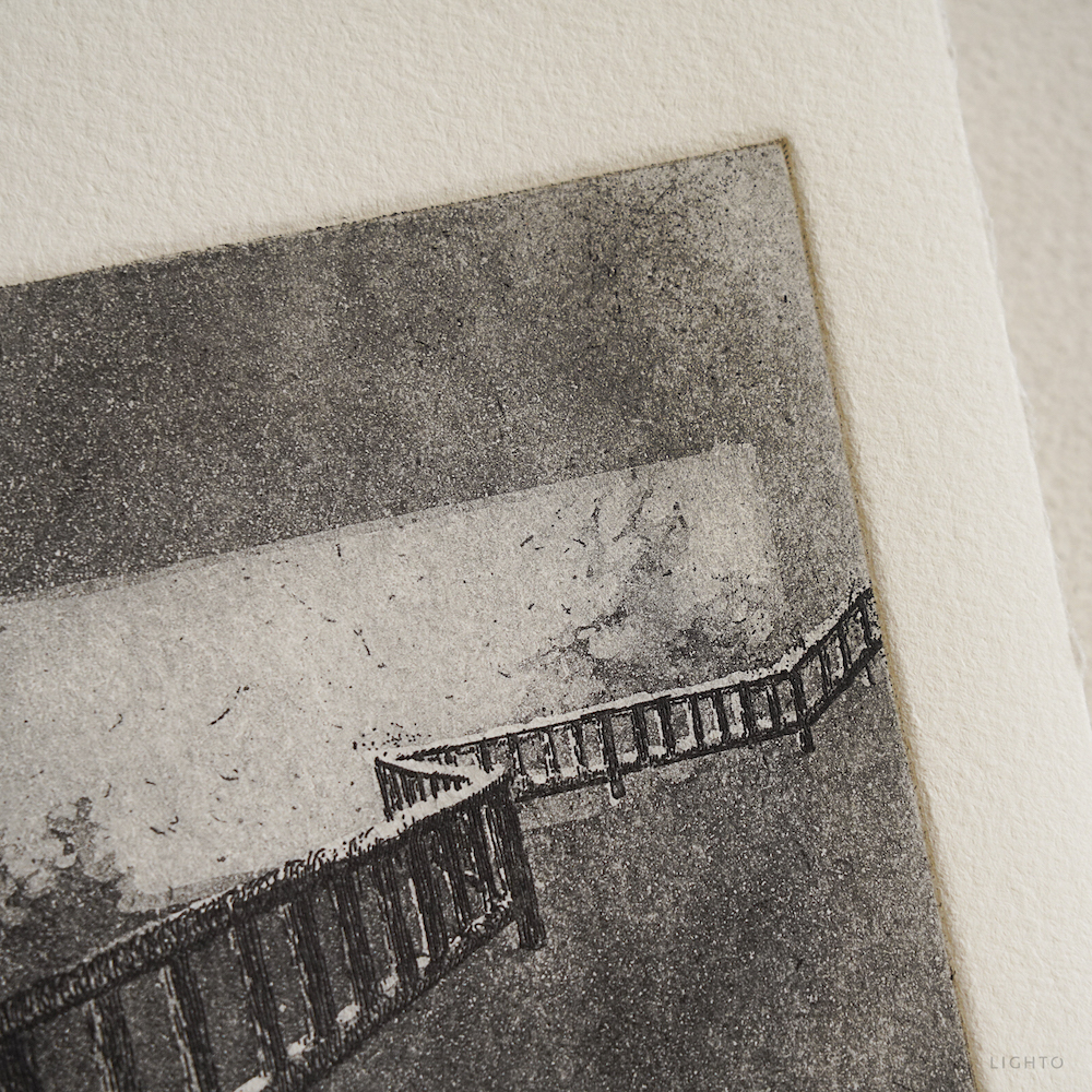 *如果升級成無酸卡紙,會使用無酸點點膠固定位置,版畫仍可與底版分離取出。