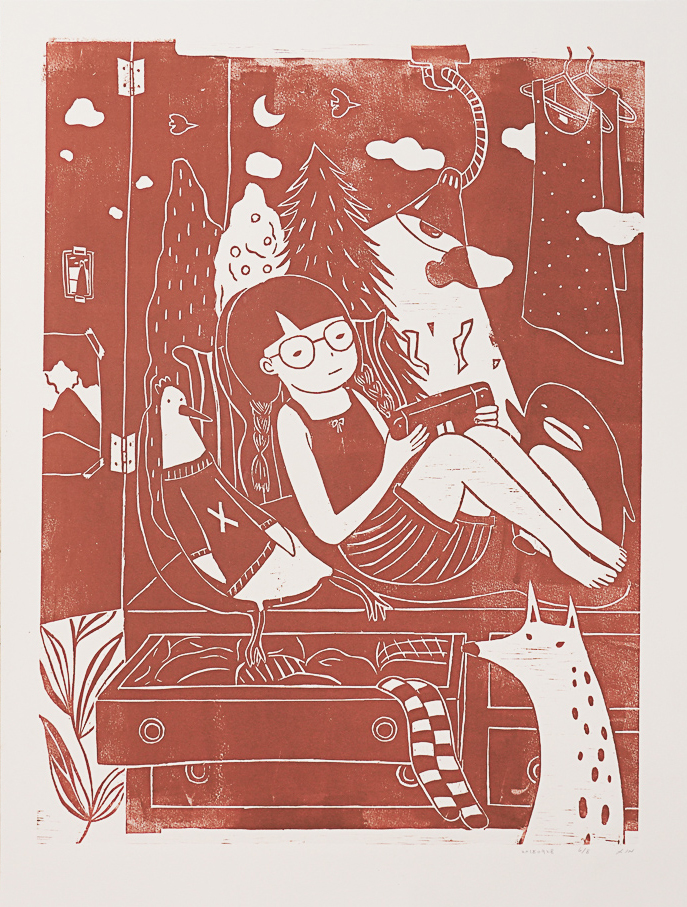 作品媒材:單色 / 油印木刻 Woodcut ,oil print