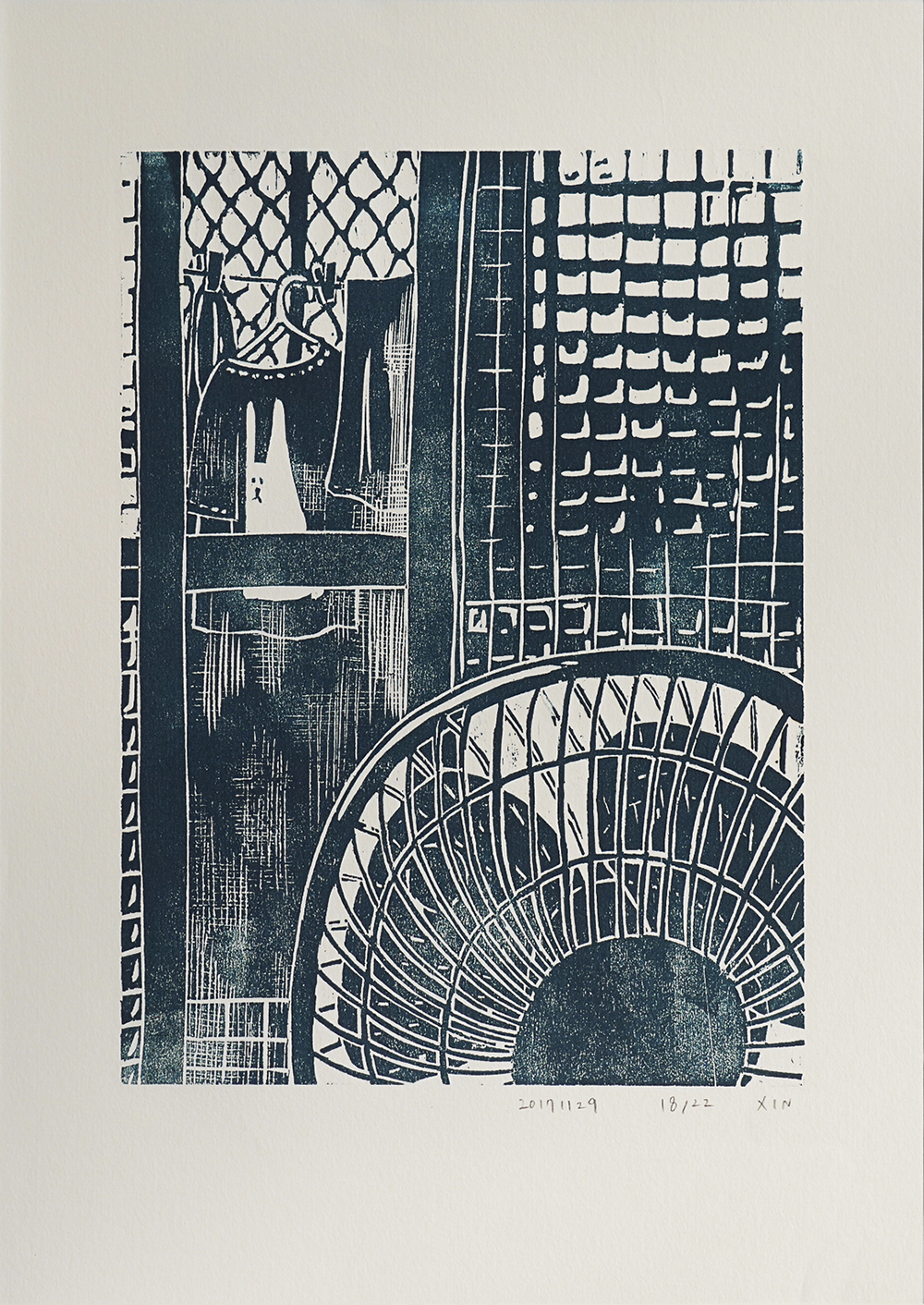 作品媒材:單色 / 油印木刻 Woodcut ,oil print