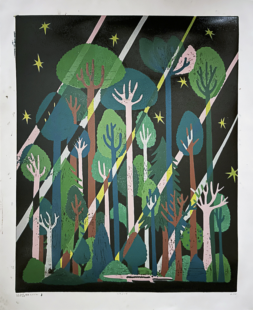 作品媒材:11 色 / 油印木刻 Woodcut ,oil print