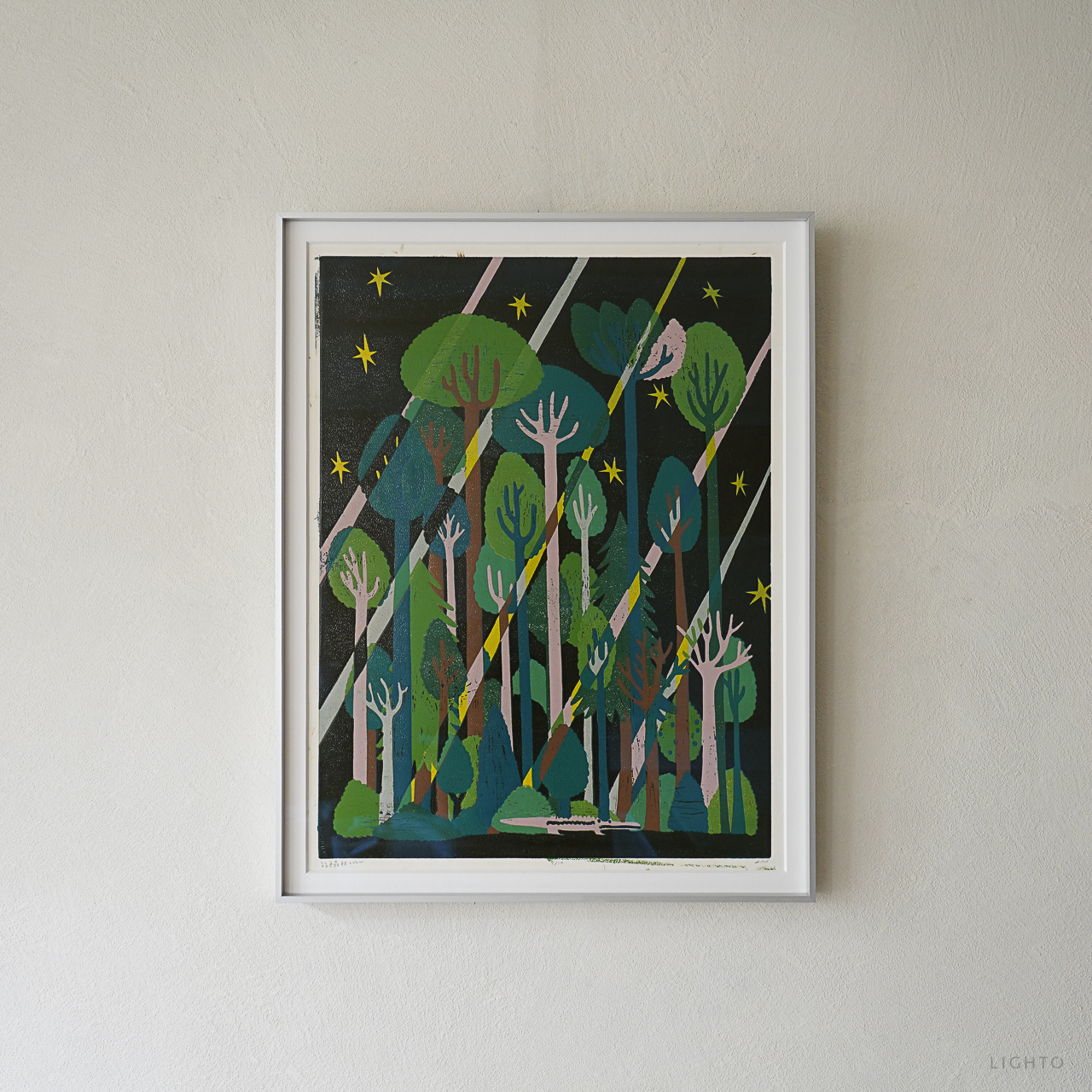 作品媒材:11 色 / 油印木刻 Woodcut ,oil print