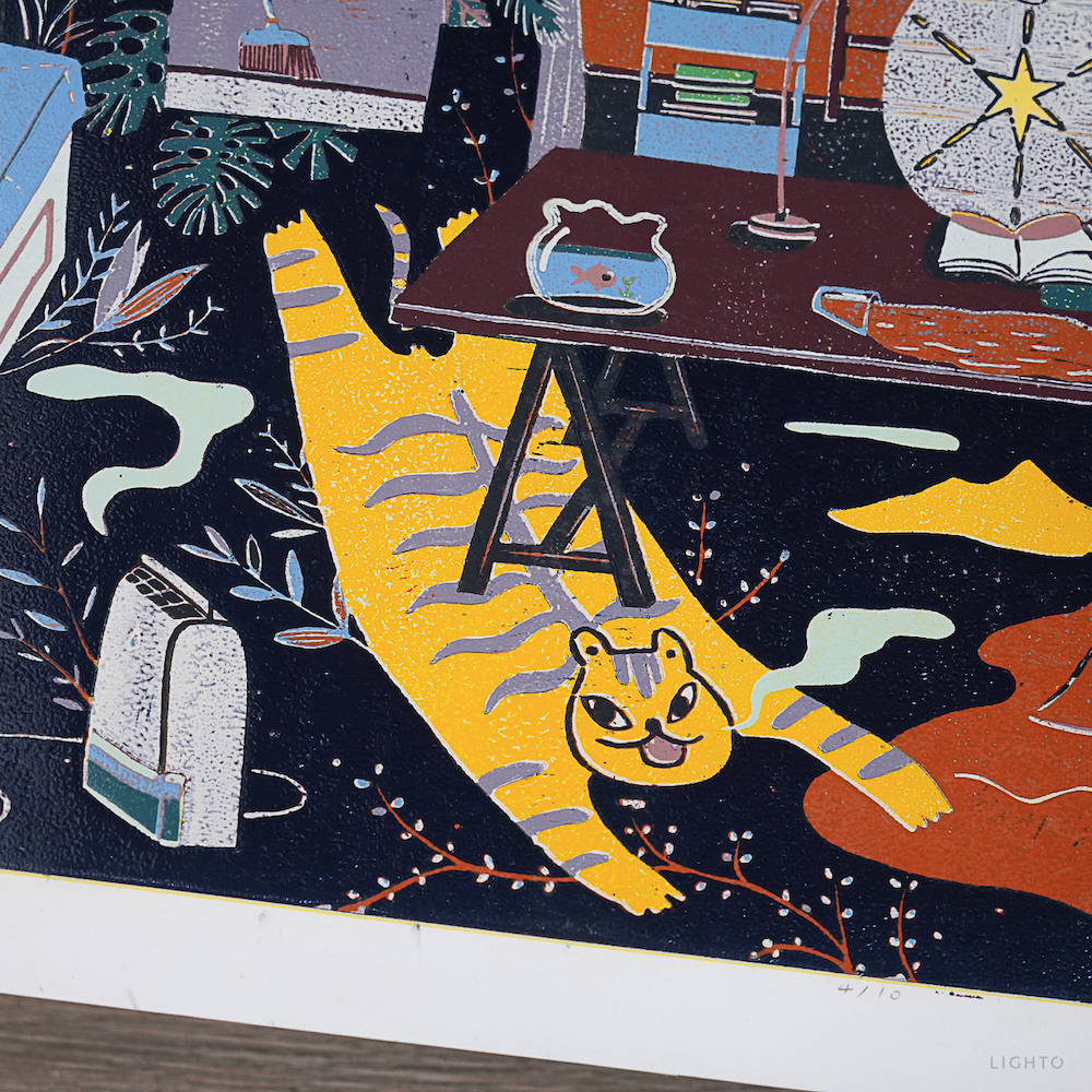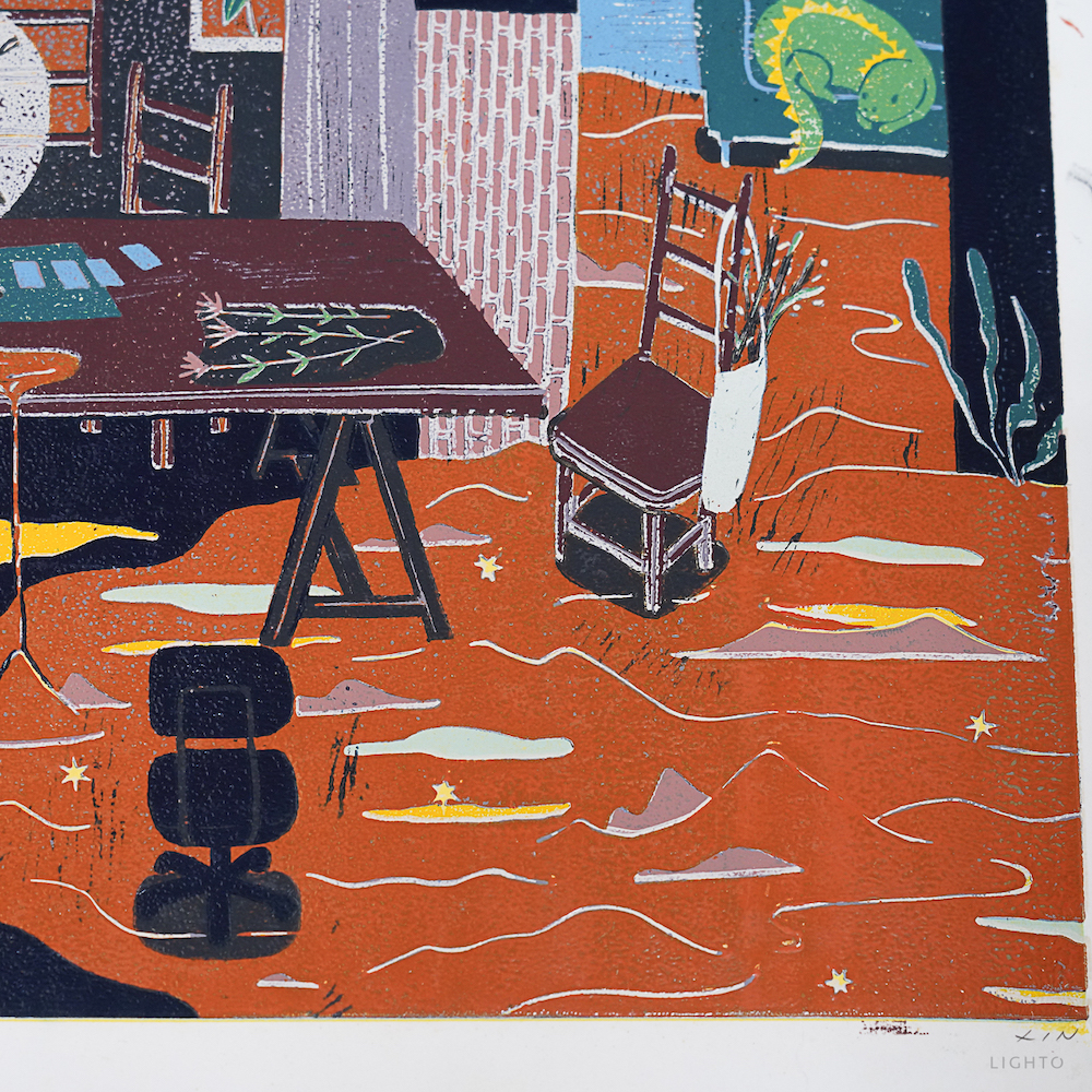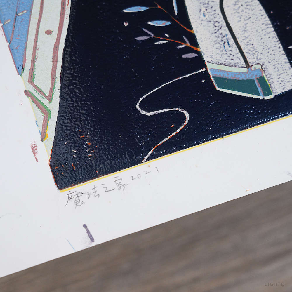 作品媒材:14 色 / 油印木刻 Woodcut ,oil print