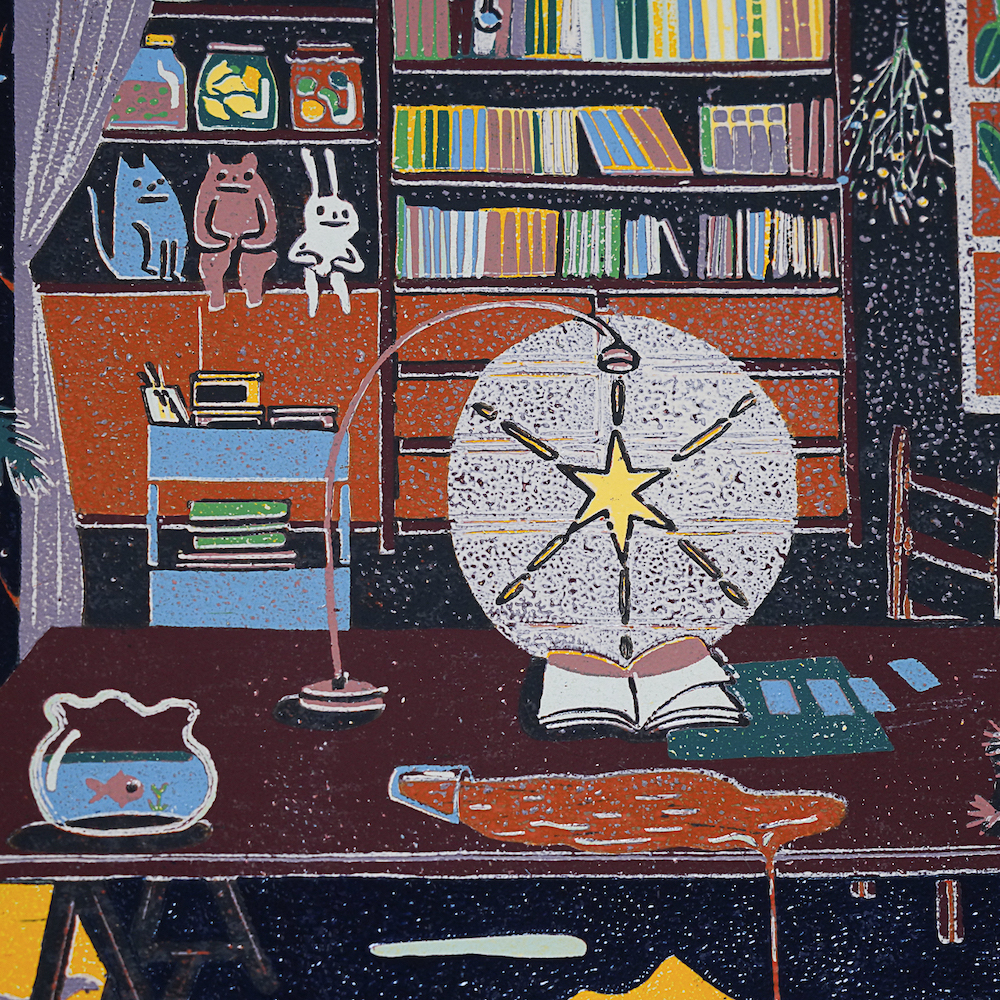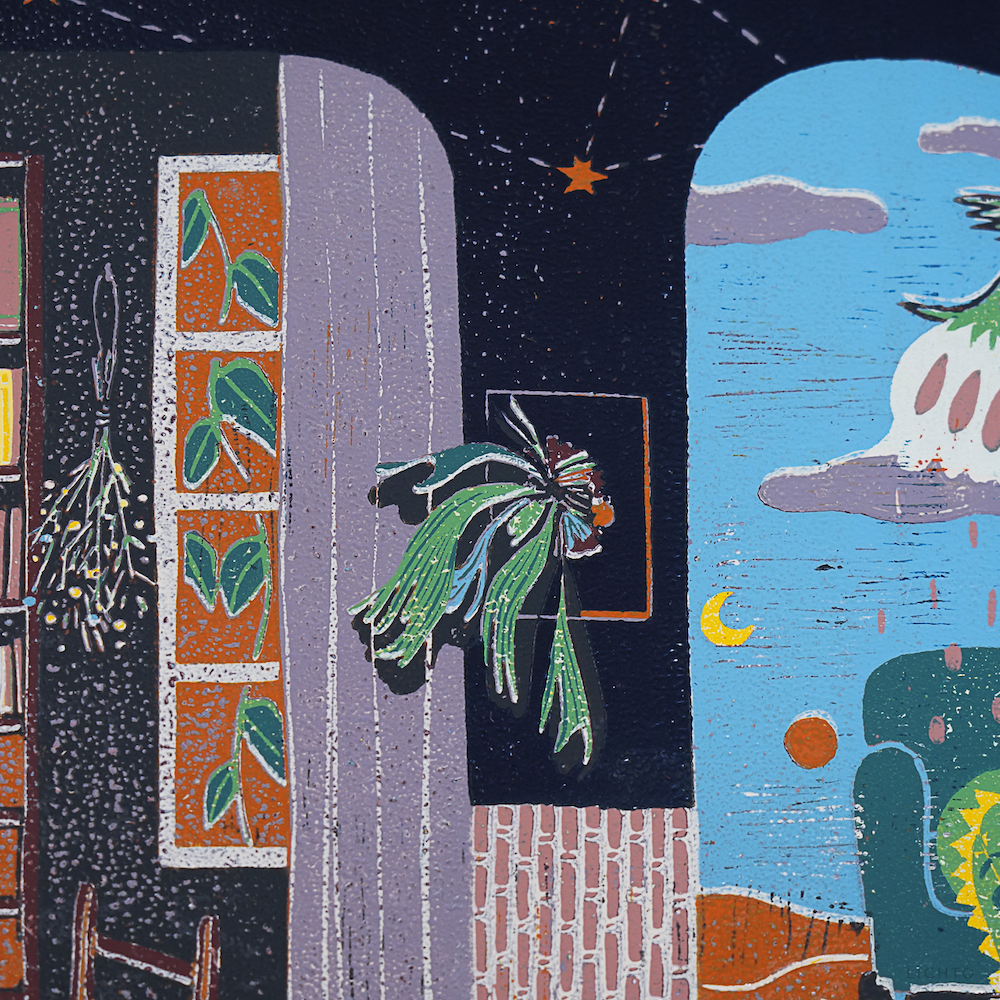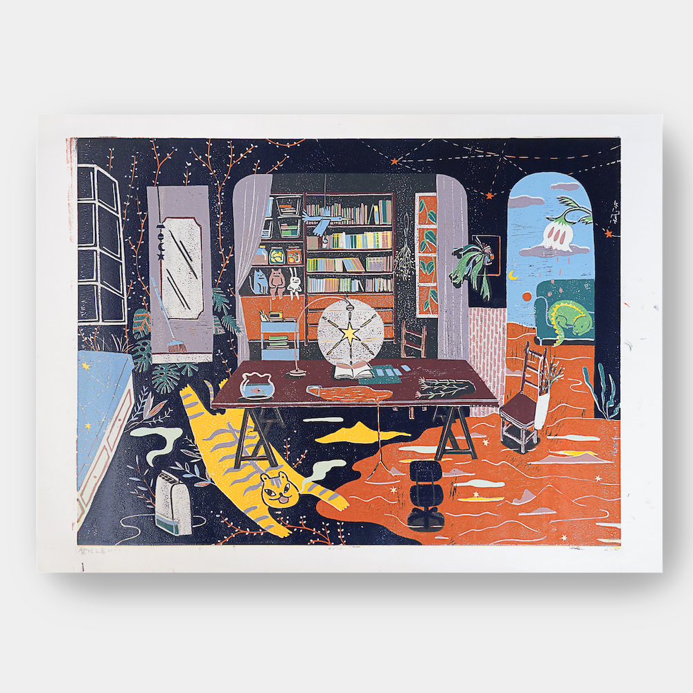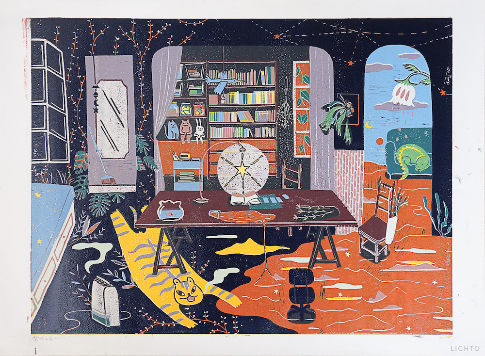 作品媒材:14 色 / 油印木刻 Woodcut ,oil print