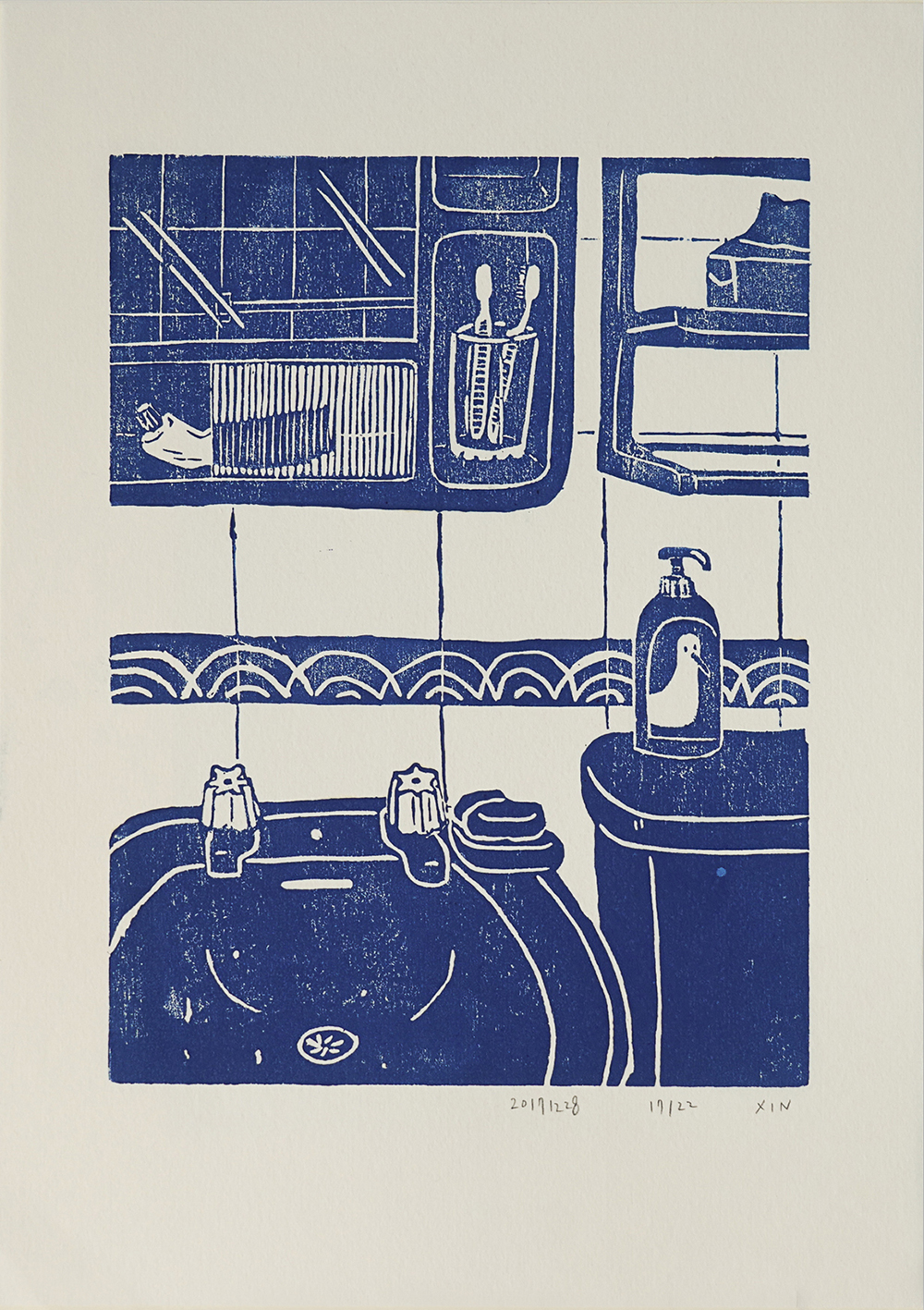 因版畫製作過程,顏料難免沾染到紙白部分,故此系列作品統一加上卡紙