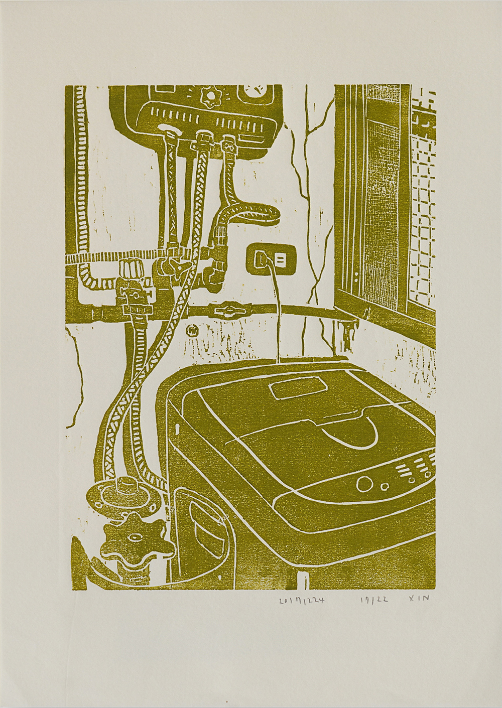 作品媒材:單色 / 油印木刻 Woodcut ,oil print