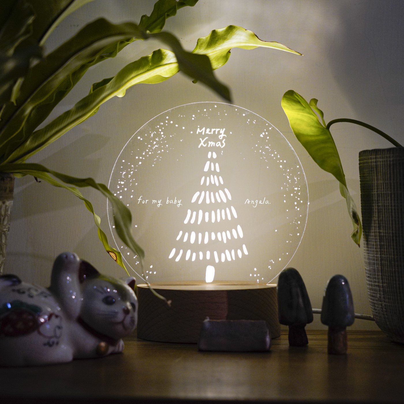 1. 圓形款:文字會加在耶誕樹的兩旁,備註時請幫我寫清楚如何斷行減少溝通時間,此款會使用追奇手寫字型。
