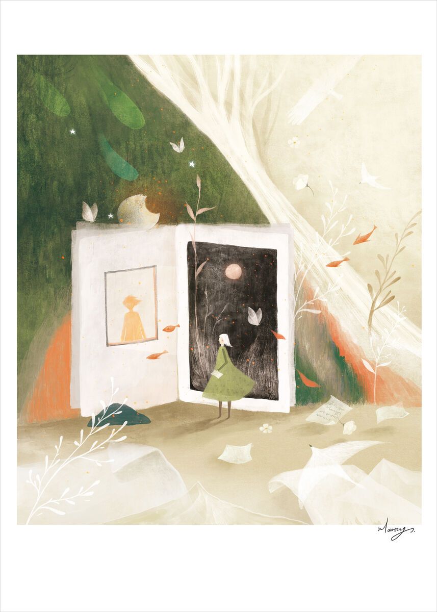 創作靈感多來自音樂、文學和攝影,還有各種想像。希望透過柔軟細膩的筆觸畫出自由與寧靜舒服的感覺,描繪充滿想像和感知的獨特世界,帶觀者到達更遠的地方。