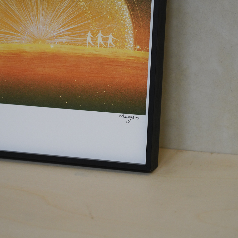 鋁框背面均有鋼索,可於牆上黏貼3M無痕掛勾(請購買5kg以上版本以策安全)即可懸掛。