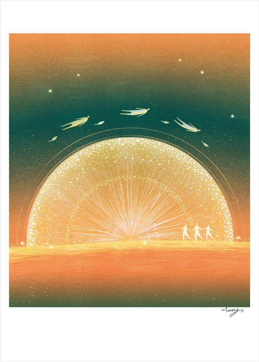 創作靈感多來自音樂、文學和攝影,還有各種想像。希望透過柔軟細膩的筆觸畫出自由與寧靜舒服的感覺,描繪充滿想像和感知的獨特世界,帶觀者到達更遠的地方。